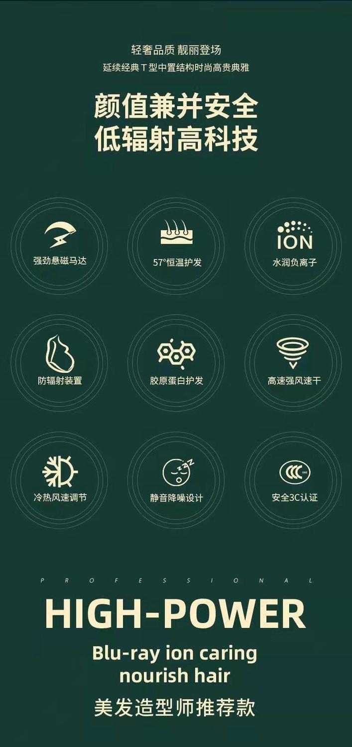 Secador de pelo doméstico salón de belleza de alta potencia secador de pelo azul viento frío y caliente secador de pelo para dormitorio de estudiantes una generación