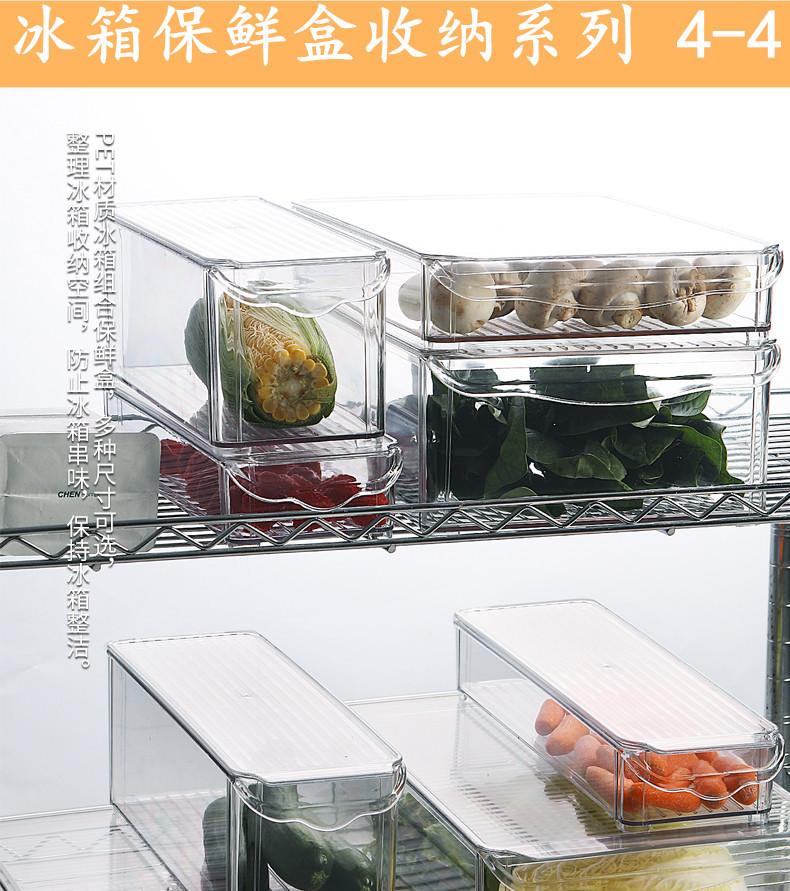 Una variedad de caja de almacenamiento transparente para refrigerador, tipo cajón para congelador de alimentos, caja de almacenamiento grande de plástico, caja para mantener la frescura, almacenamiento de artículos diversos