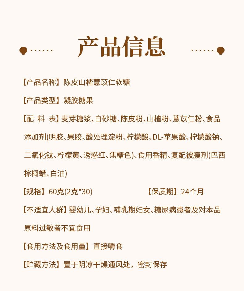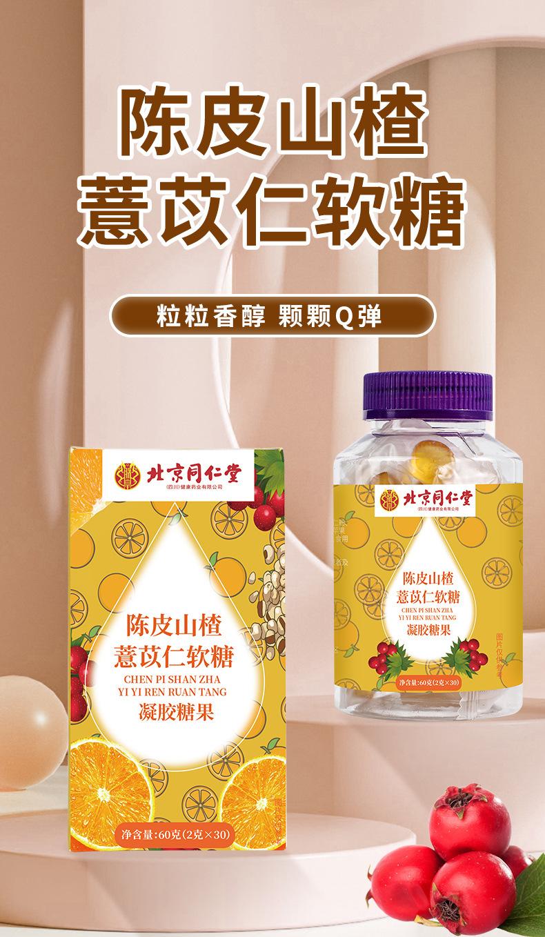 Caramelo suave de mandarina, espino blanco y semilla de coix de Beijing Tongrentang, caramelo de gelatina para niños y adultos, 30/botella, una generación de cabello