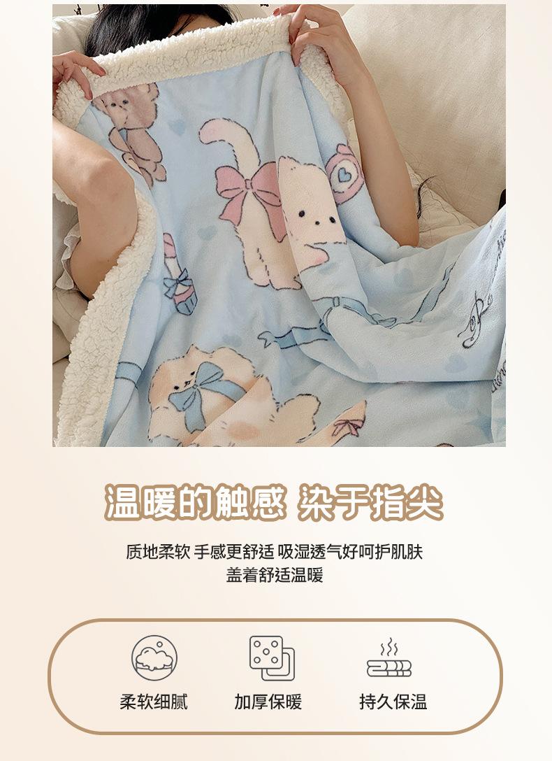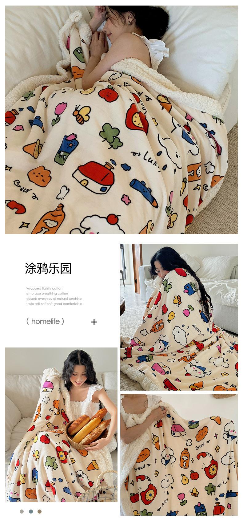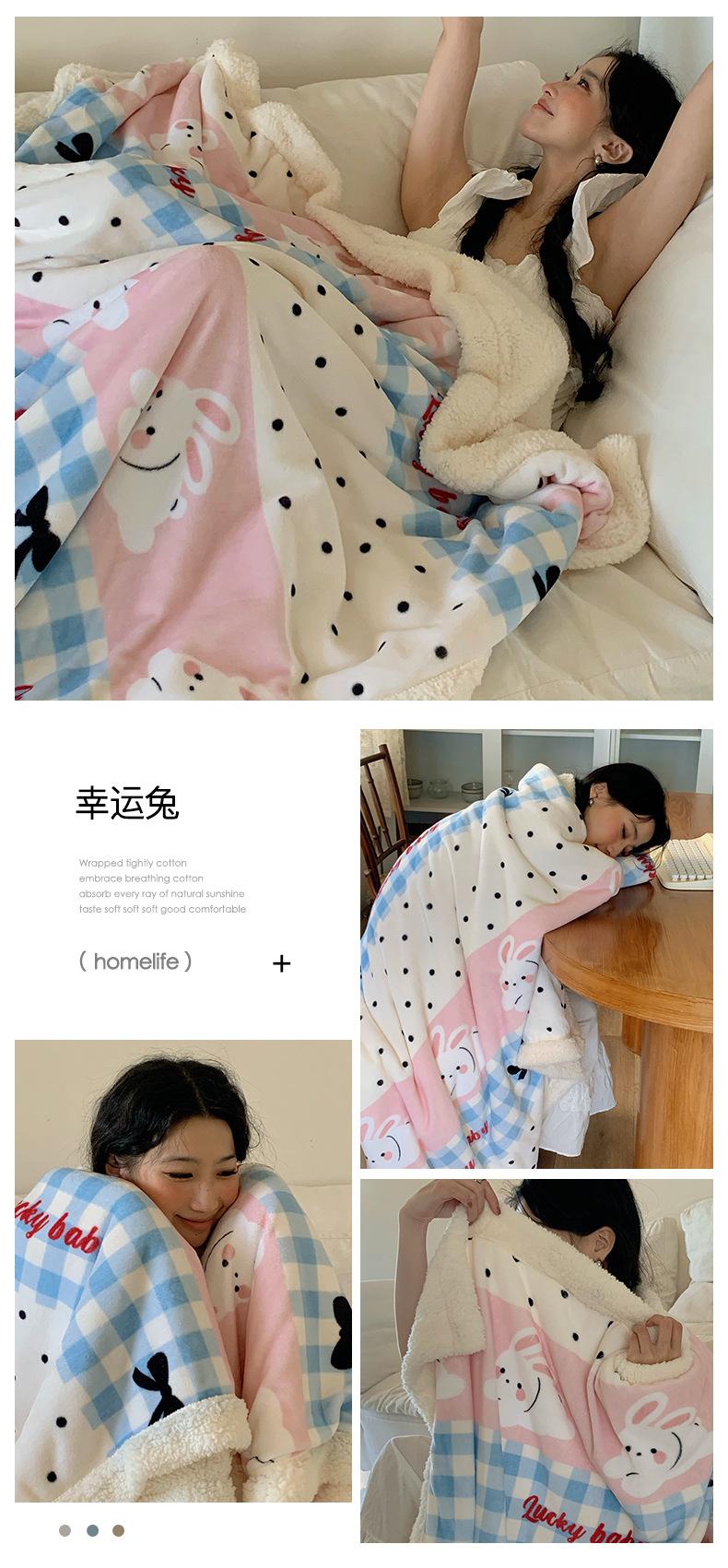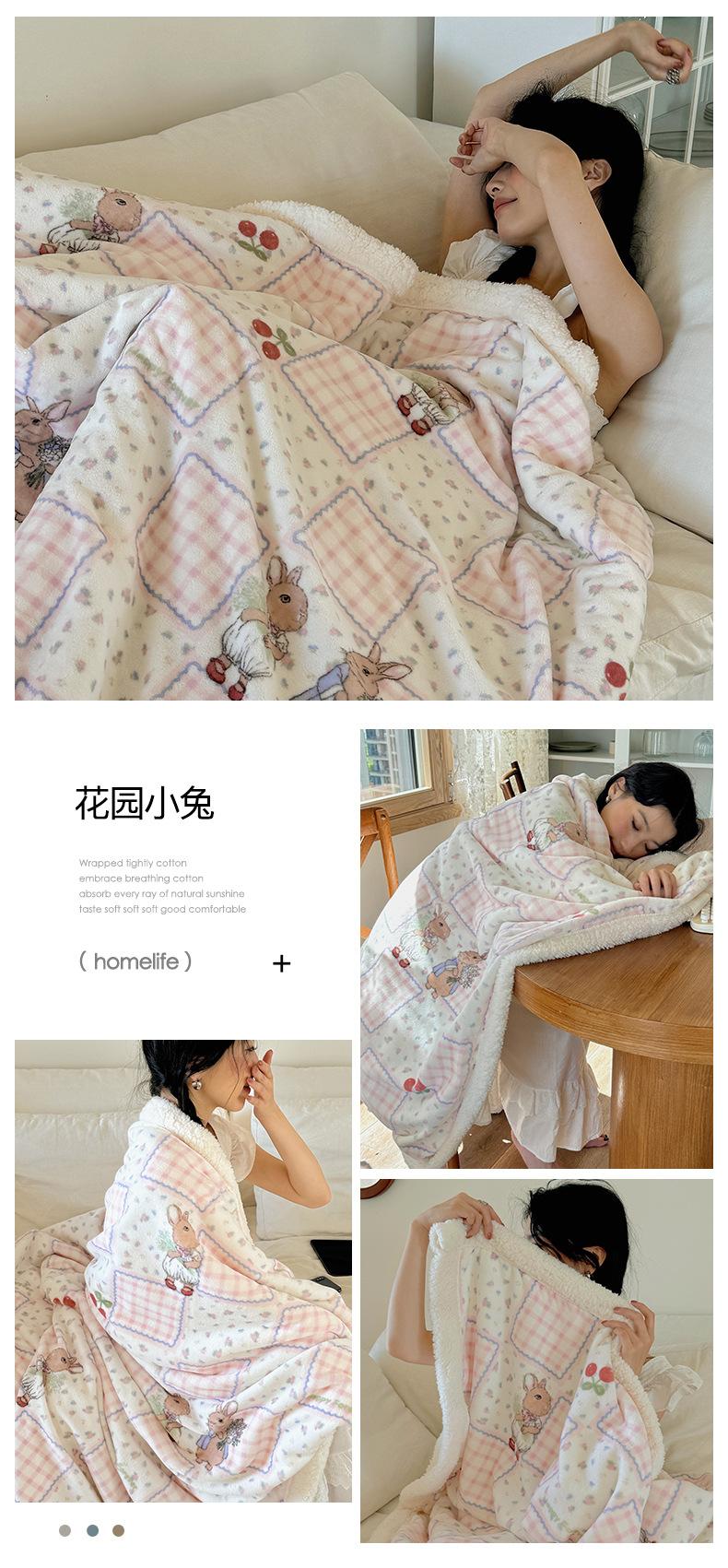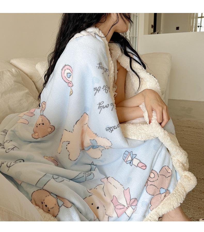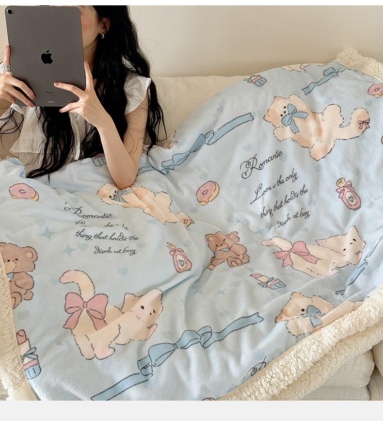 Manta de Vellón de Leche de Dibujos Animados Estilo Blogger INS, Doble Capa Engrosada para Niños, Terciopelo Agradable para la Piel, Manta para la Hora del Almuerzo