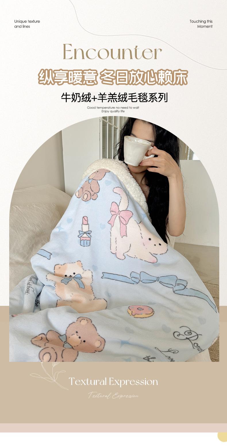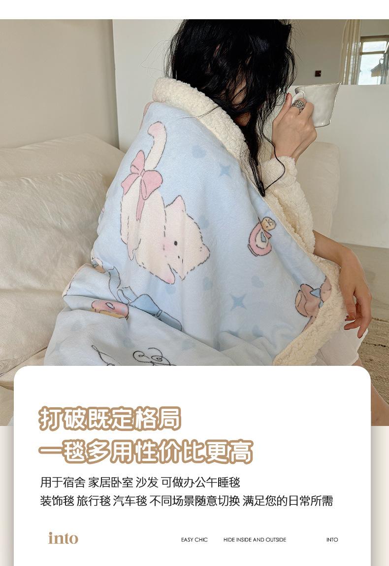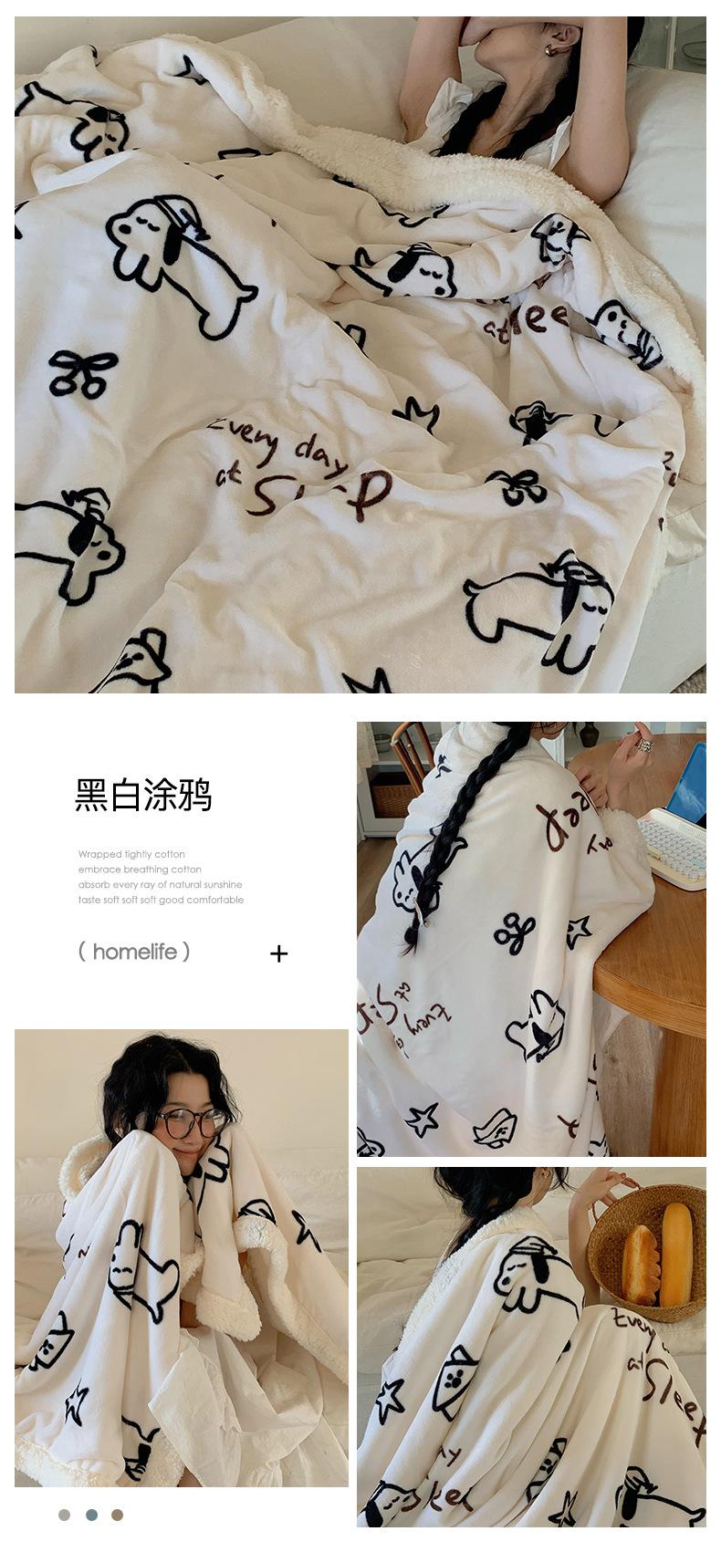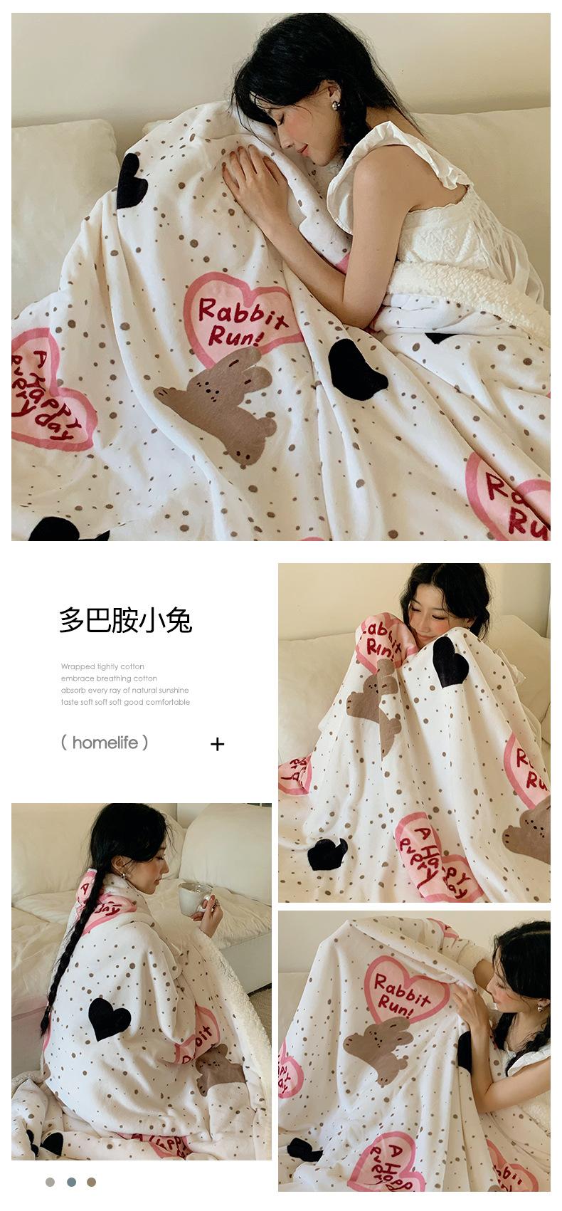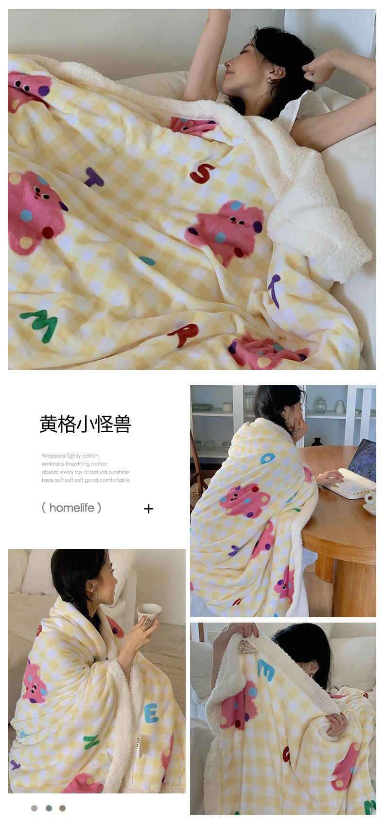 Manta de Vellón de Leche de Dibujos Animados Estilo Blogger INS, Doble Capa Engrosada para Niños, Terciopelo Agradable para la Piel, Manta para la Hora del Almuerzo