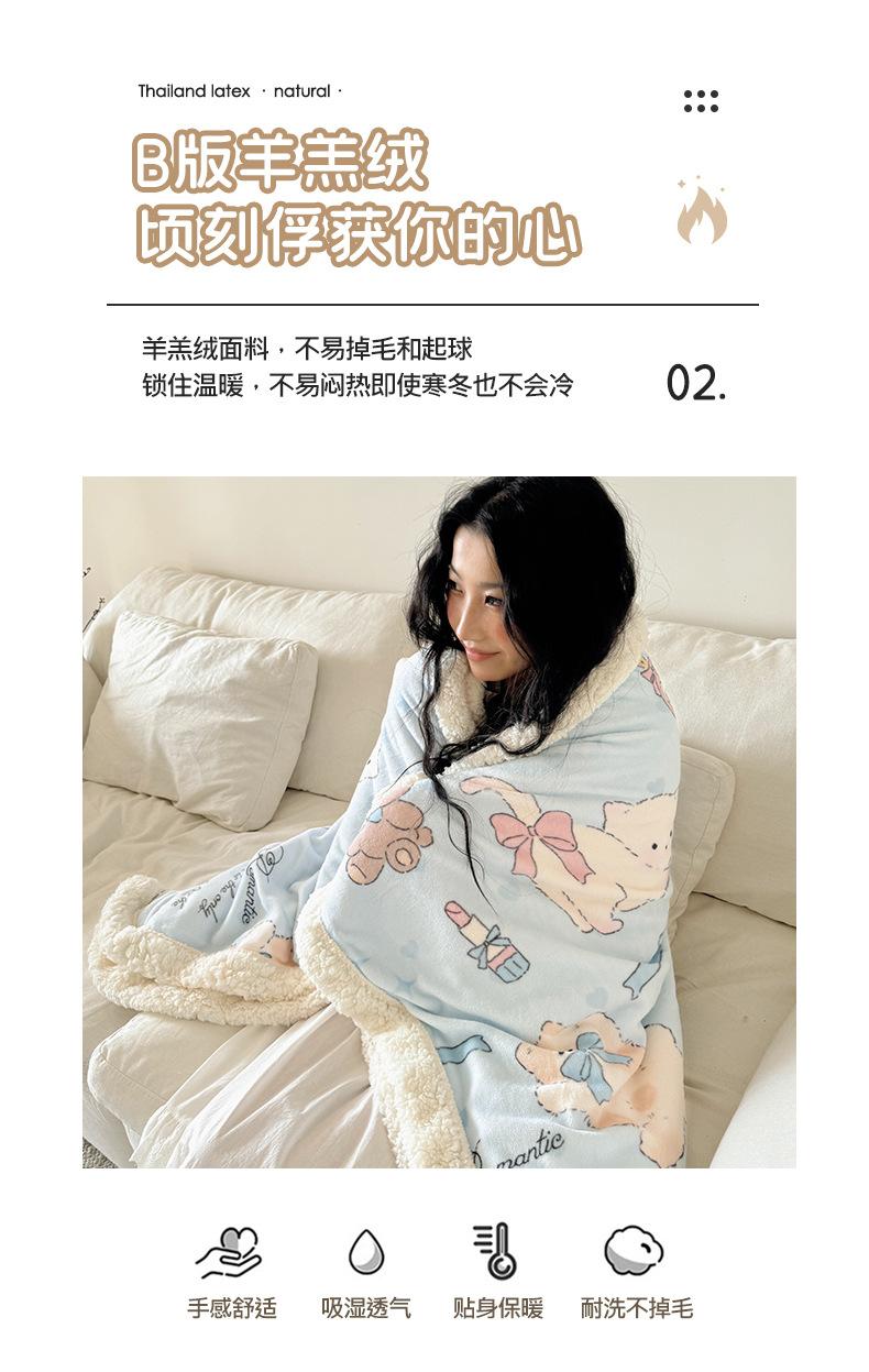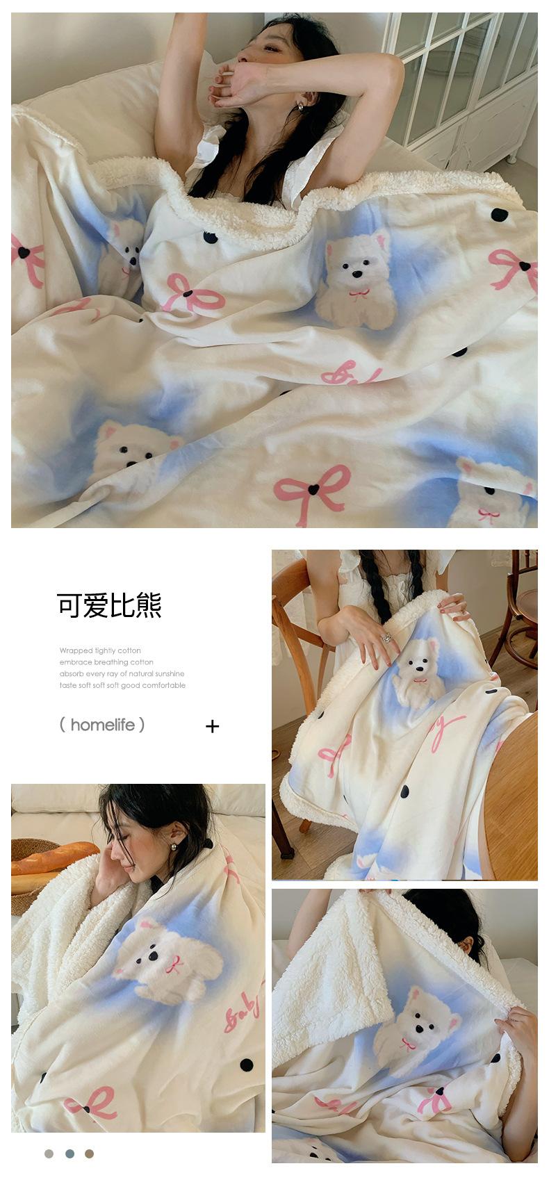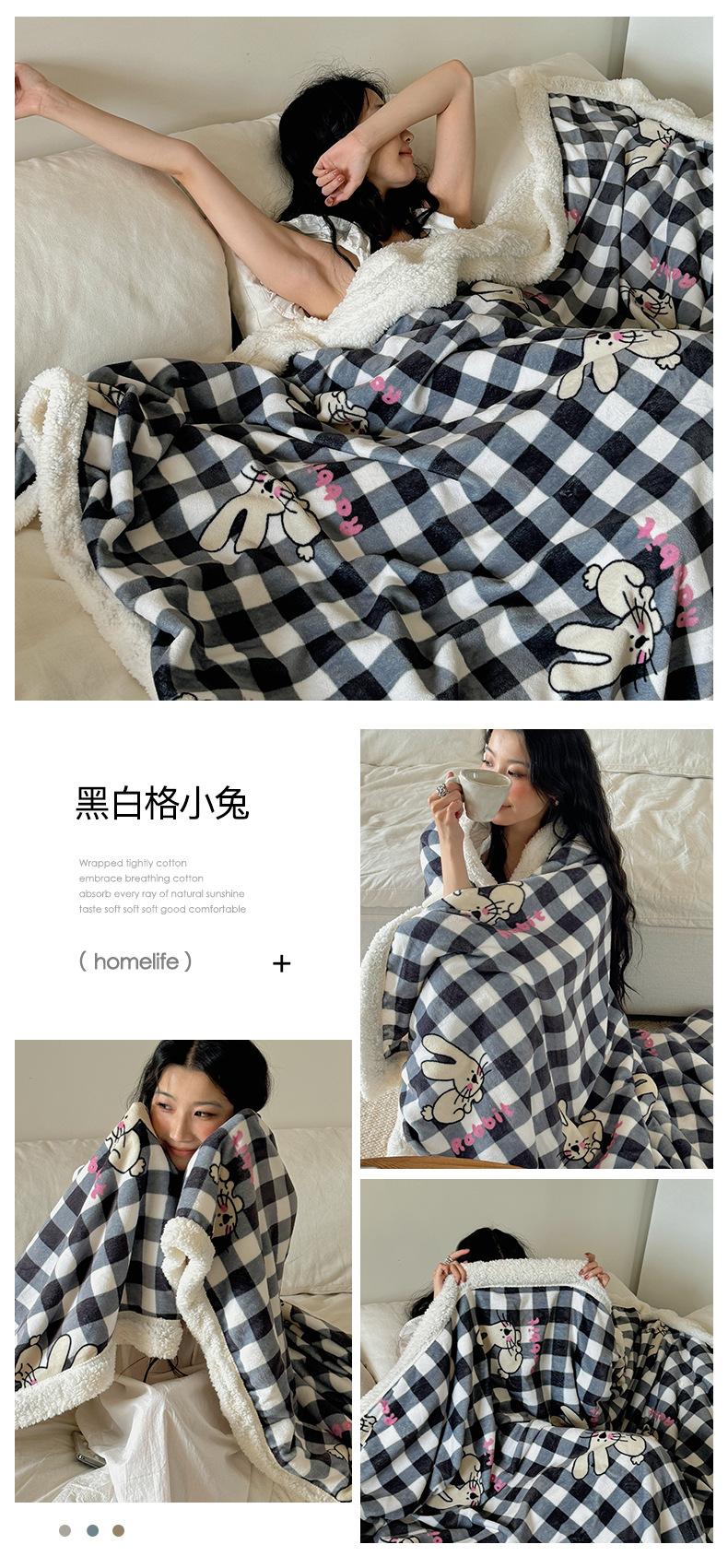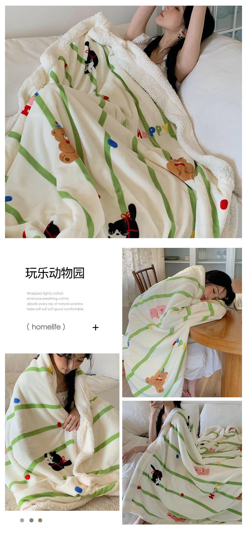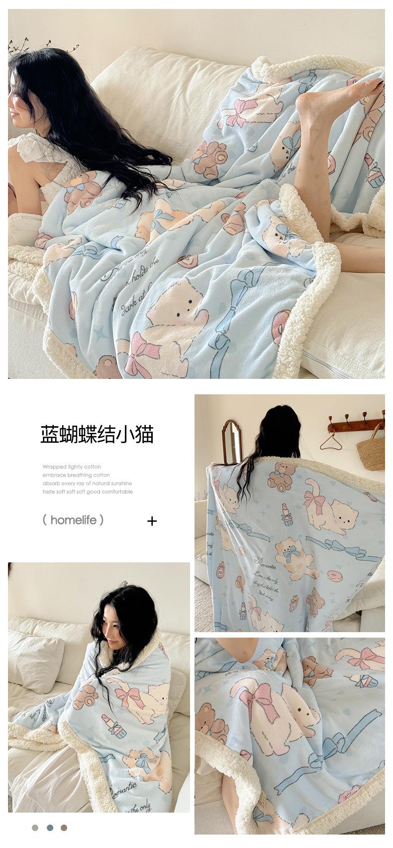 Manta de Vellón de Leche de Dibujos Animados Estilo Blogger INS, Doble Capa Engrosada para Niños, Terciopelo Agradable para la Piel, Manta para la Hora del Almuerzo