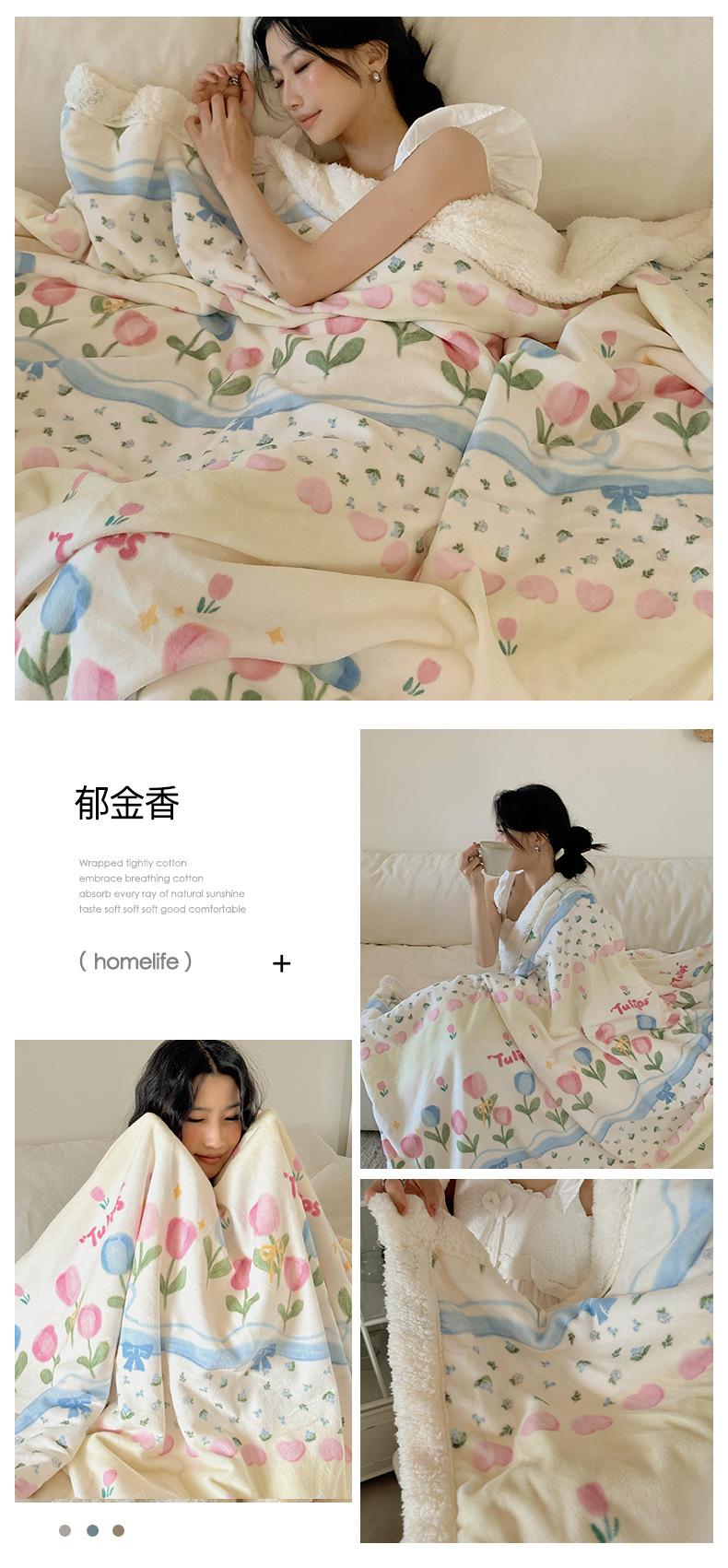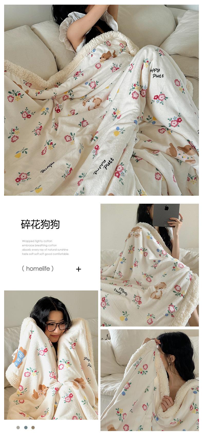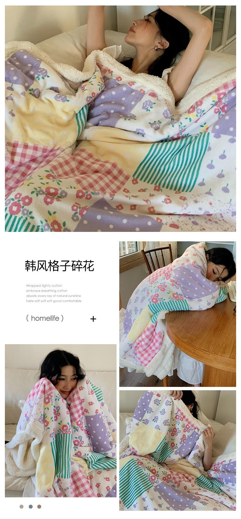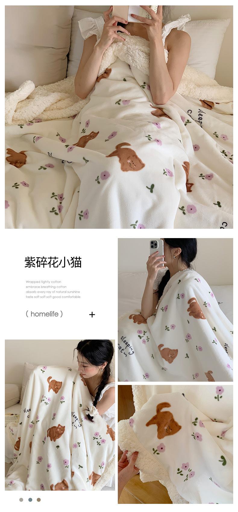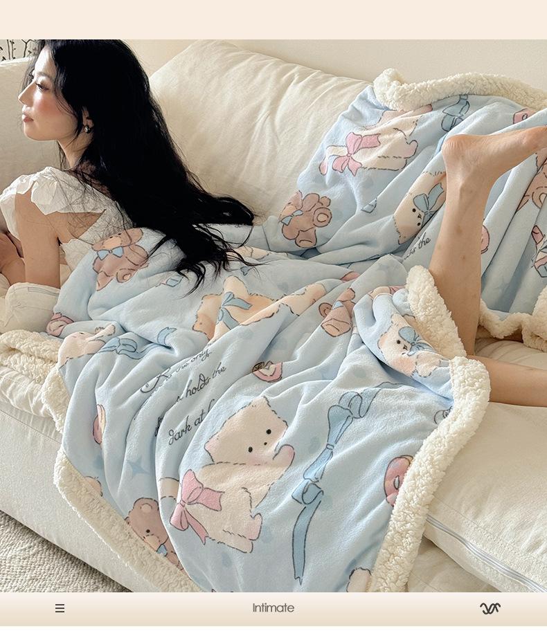 Manta de Vellón de Leche de Dibujos Animados Estilo Blogger INS, Doble Capa Engrosada para Niños, Terciopelo Agradable para la Piel, Manta para la Hora del Almuerzo