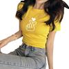 2024 Verano Nuevo Ajustado Ombligo Descubierto Cuello Redondo Manga Corta Camiseta Mujer Manga Media Cintura Alta Corta Top Estudiantil Moda Mujer