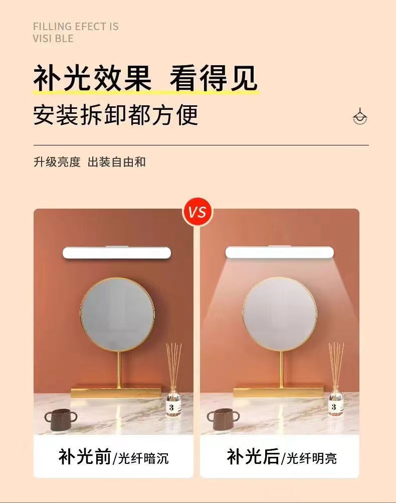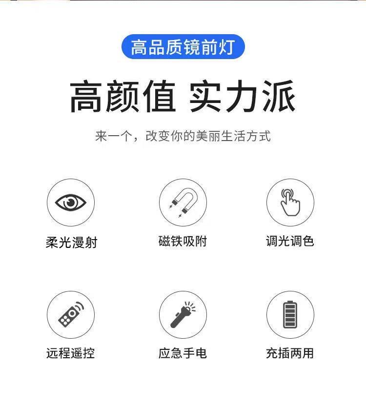 Od59Led Faro de Espejo Lámpara de Tocador Luz de Relleno Lámpara de Maquillaje Lámpara de Dormitorio Succión Magnética Sin Perforaciones Cocina Carga Remota