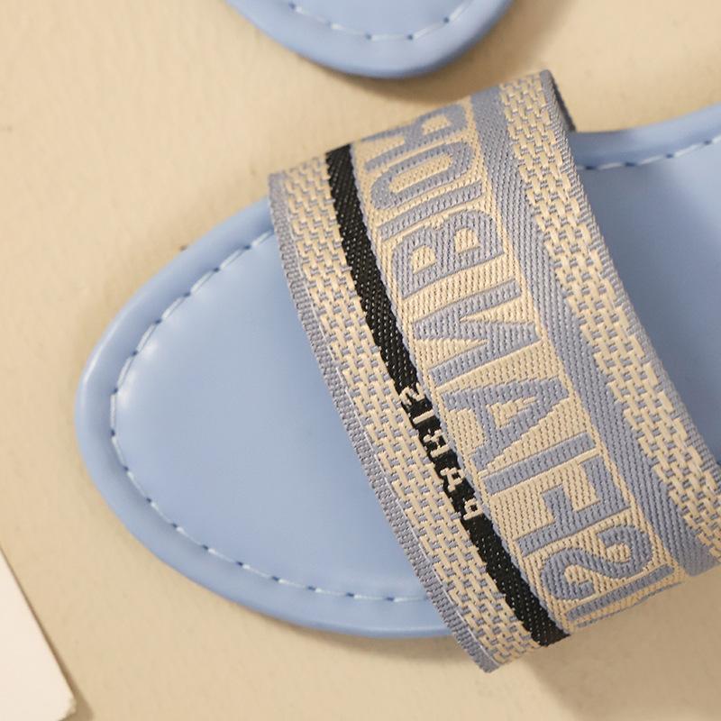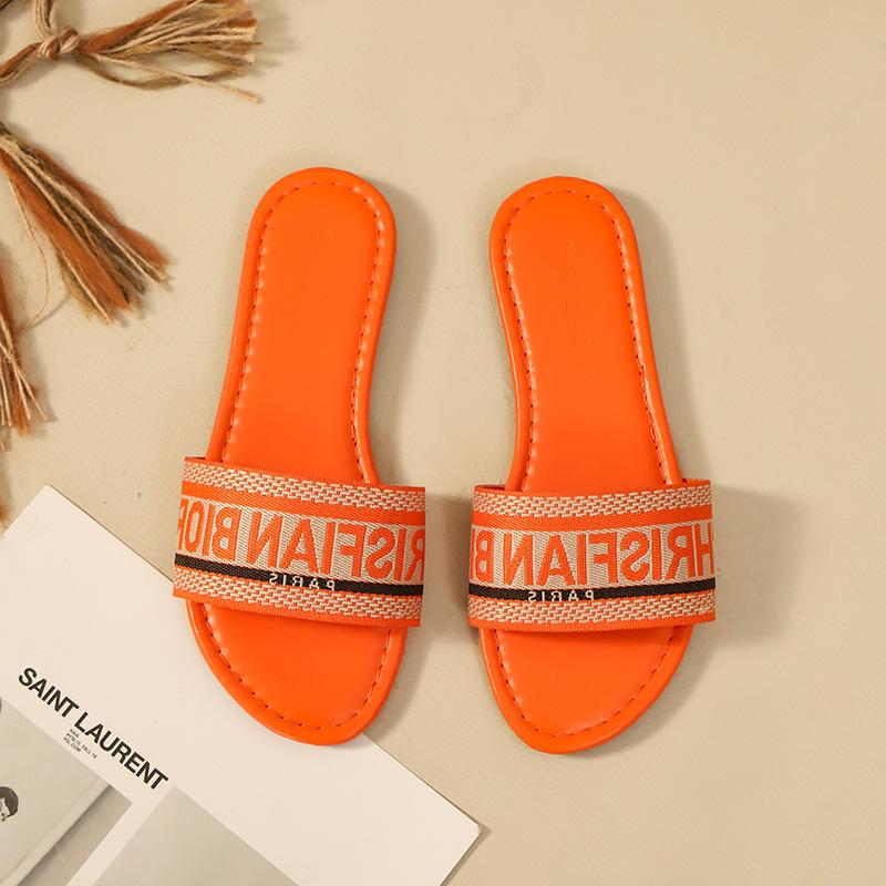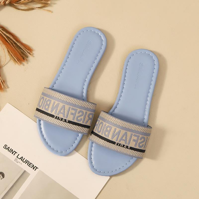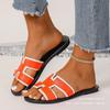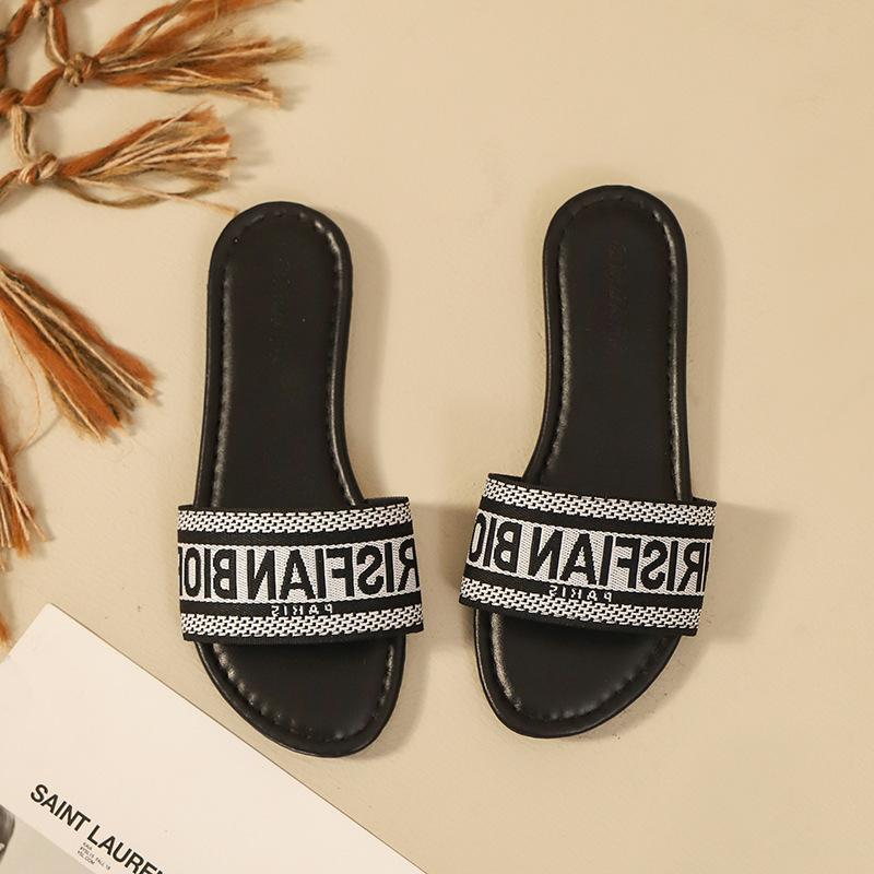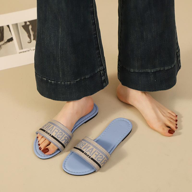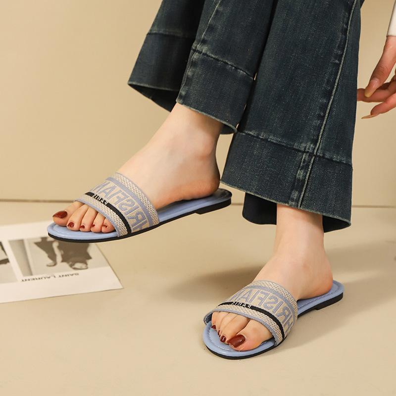 Transfronterizo 2025 Nuevo talla grande Zapatos de mujer Moda talla grande Pantuflas Ropa de exterior Arrastre de una palabra Letra Pantuflas planas casuales