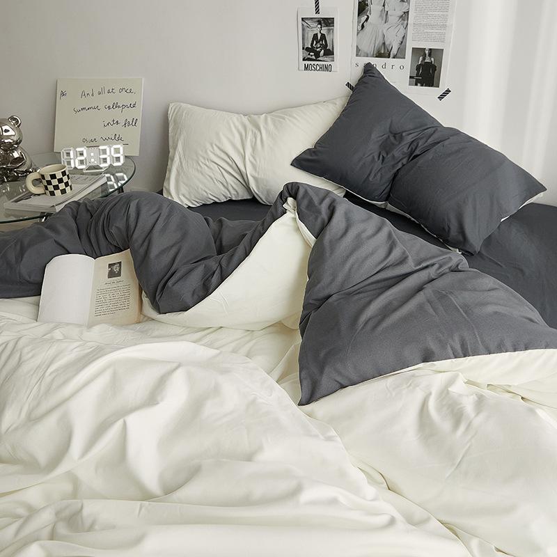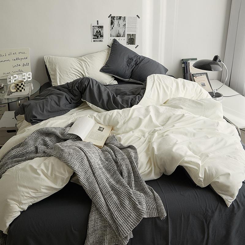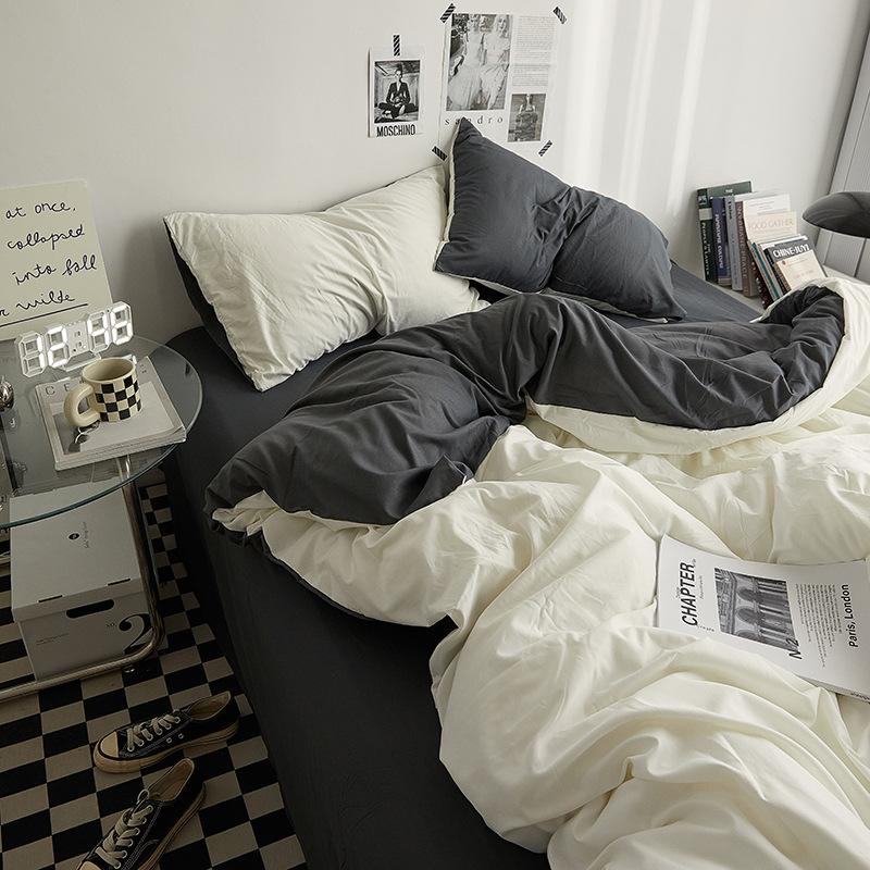 Ins Color Puro Doble Pieza Super Suave Algodón Lavado Juego de Cuatro Piezas Dormitorio de Estudiante Individual Juego de Tres Piezas Cubre Edredón de Cuatro Piezas Venta al por Mayor
