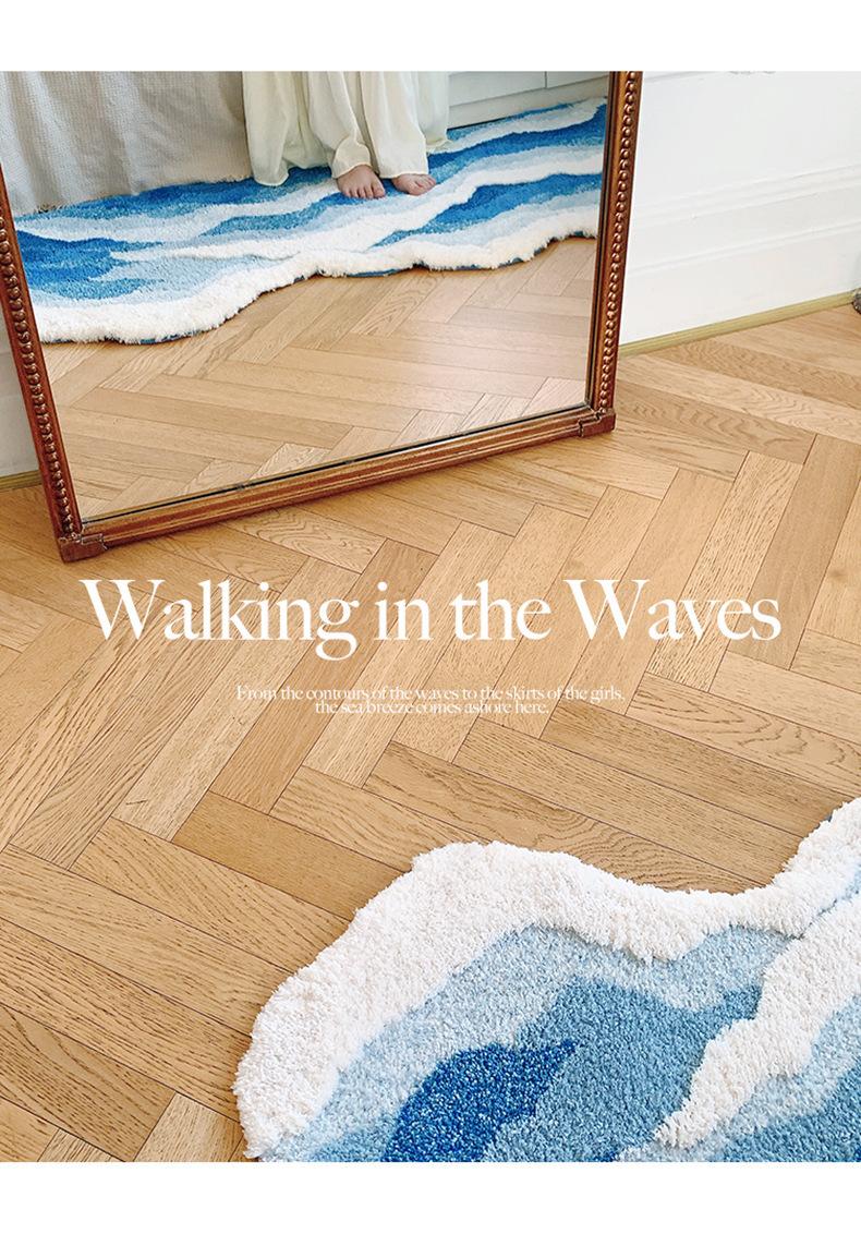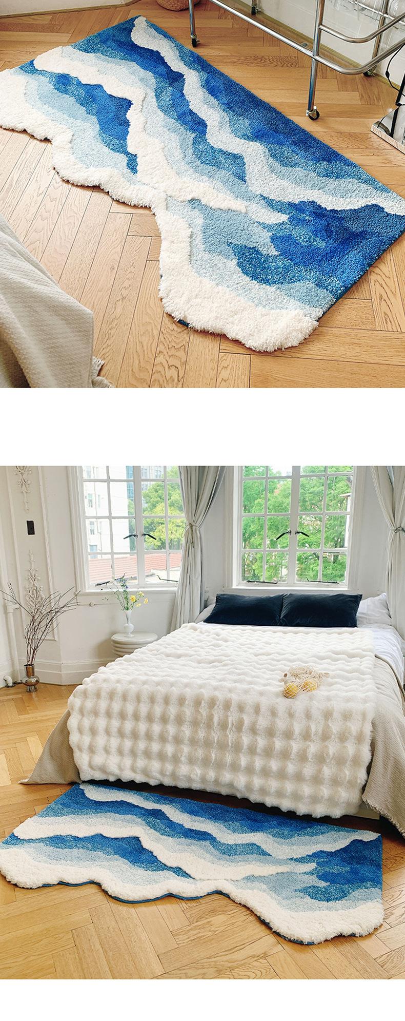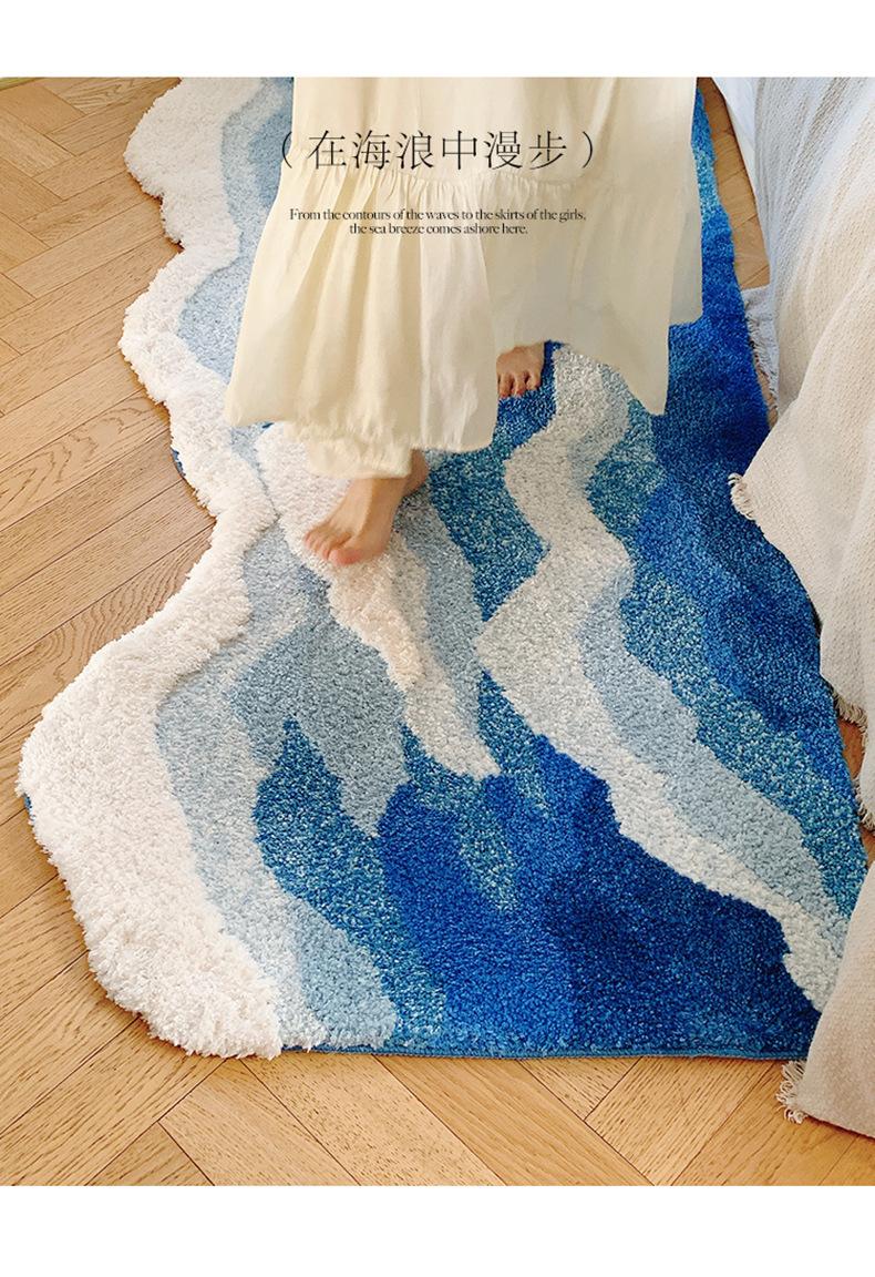 Manta de Noche Flotada Personalizada Mesa de Centro Antideslizante Azul Forma Especial Sala de Estar Dormitorio Alfombra para Pies Alfombra de Piso Alfombra Ondulada Manta de Noche