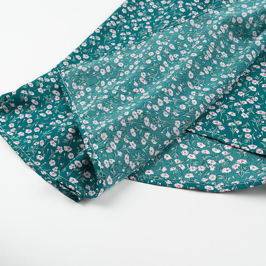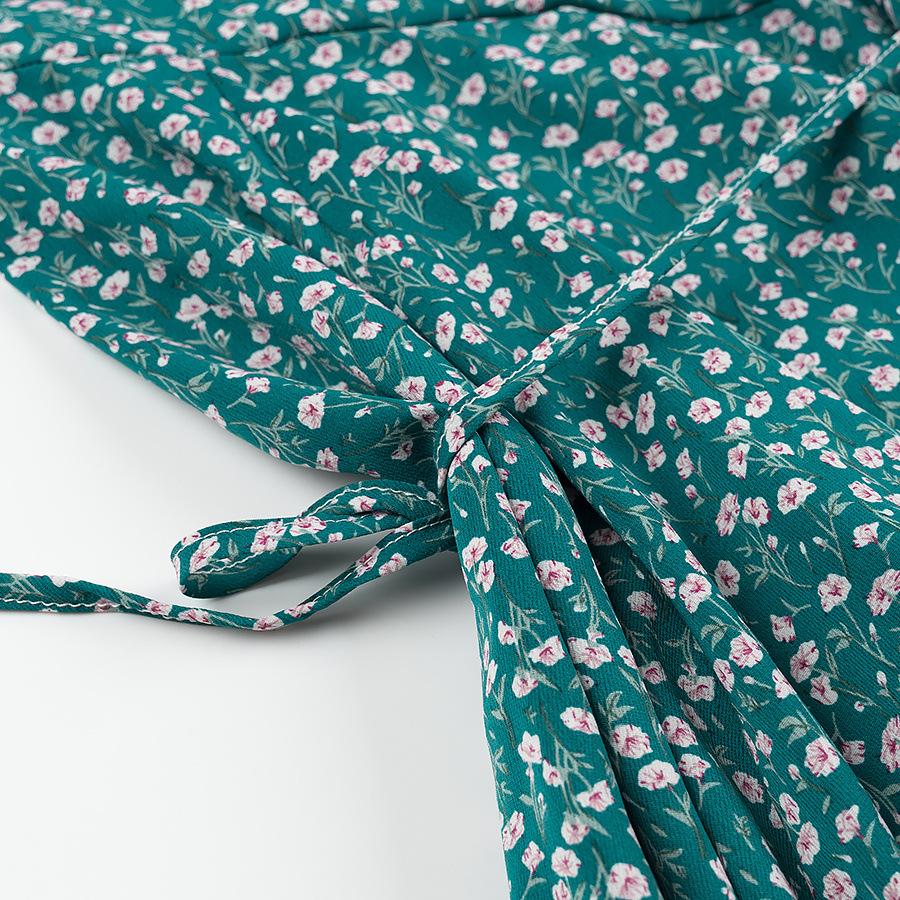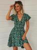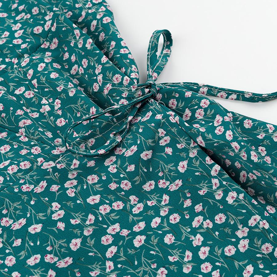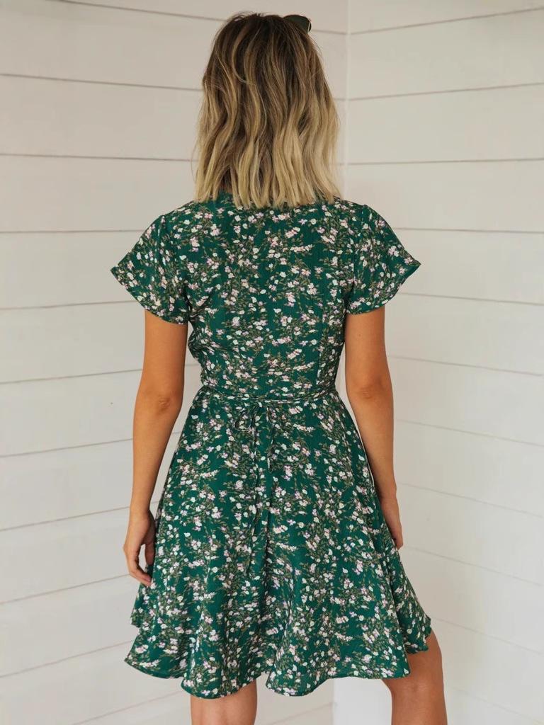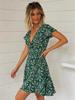 Verano 2025 Nuevo Estilo Francés Vacaciones en la Playa Estampado Vestido Corto Floral con Cuello en V y Cordones