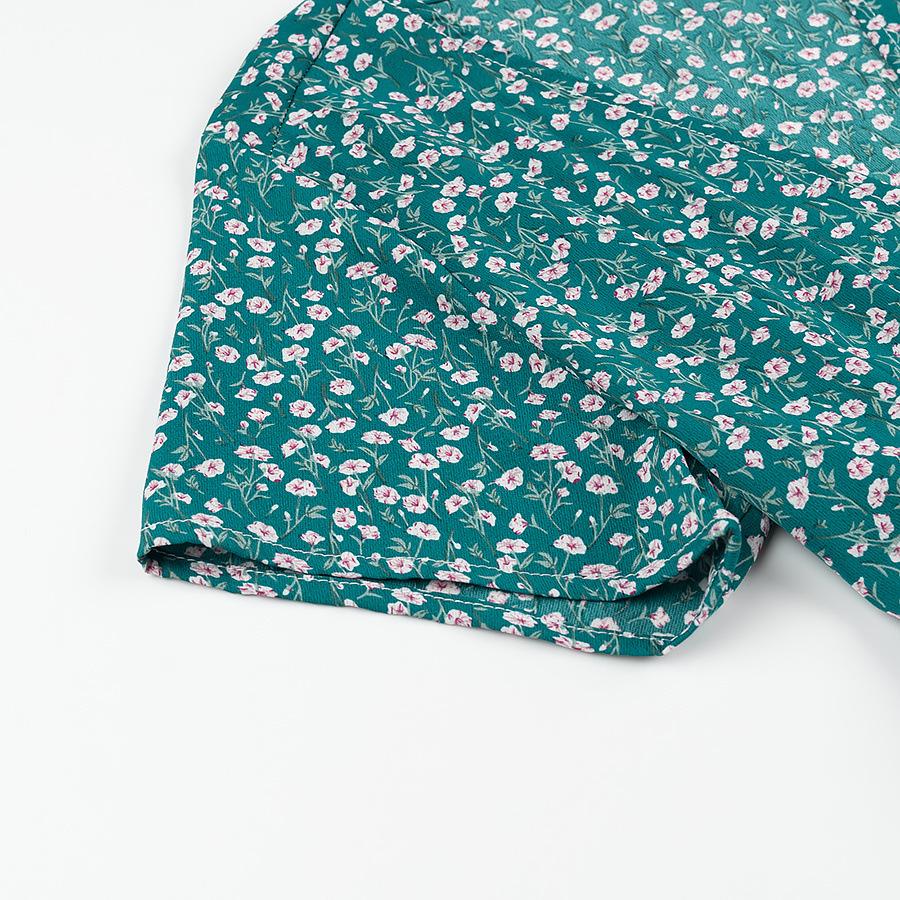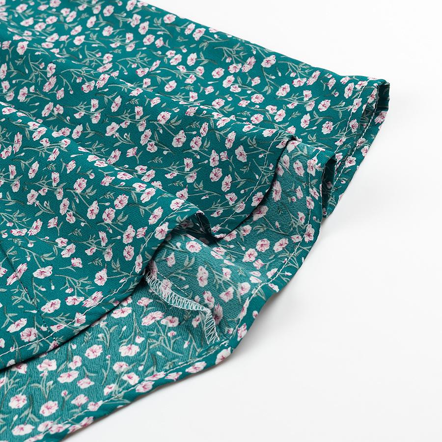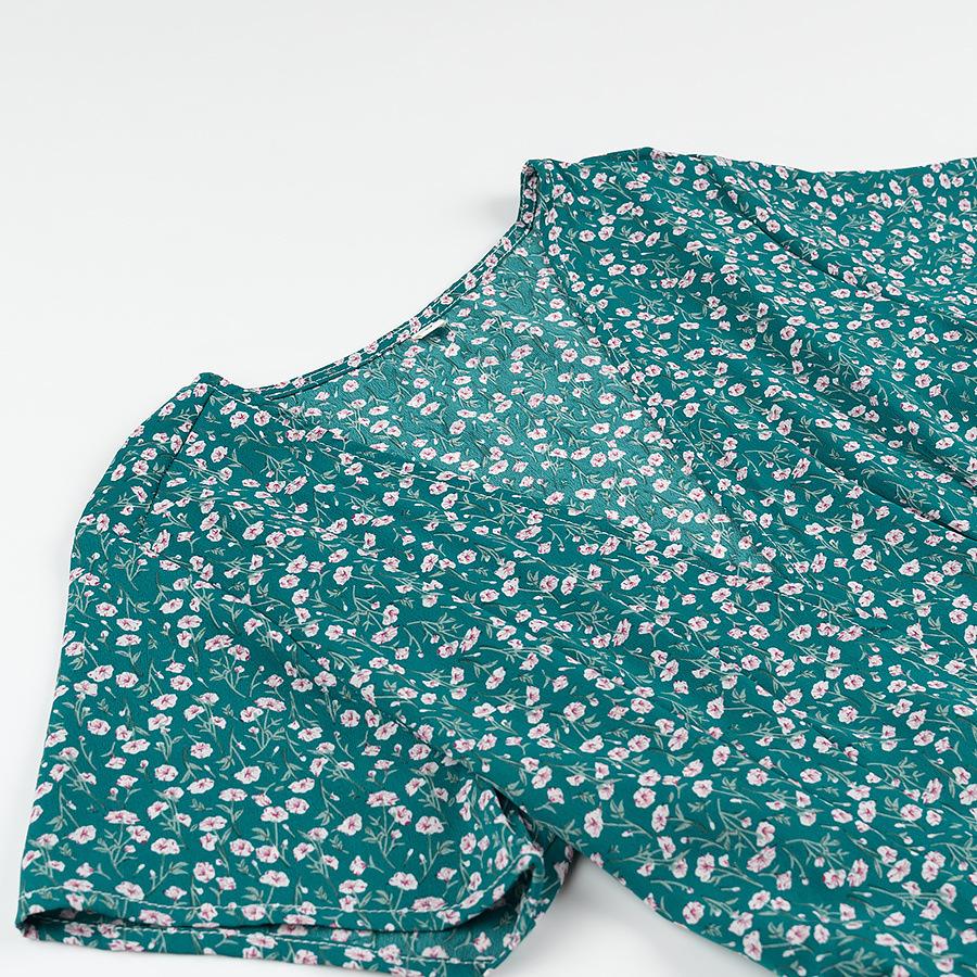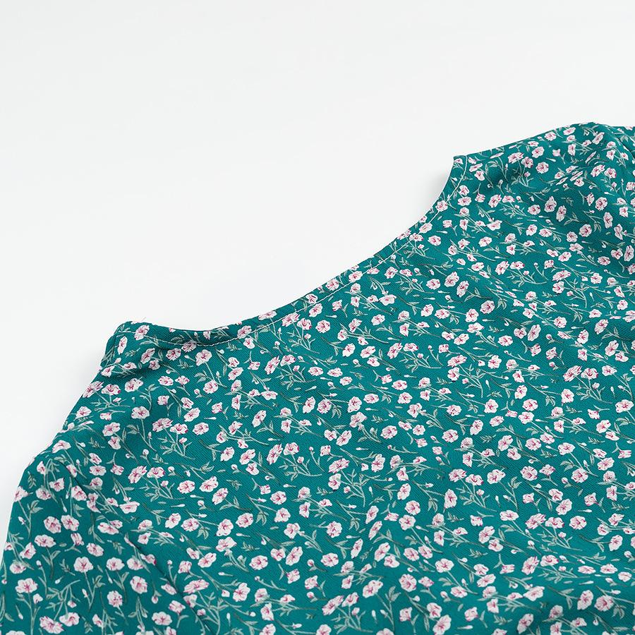 Verano 2025 Nuevo Estilo Francés Vacaciones en la Playa Estampado Vestido Corto Floral con Cuello en V y Cordones