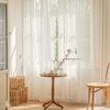 Cortina de mampara con varillas de velcro sin perforaciones, cortina de encaje blanco francés para sala de estar, balcón, ventana salediza, partición corta