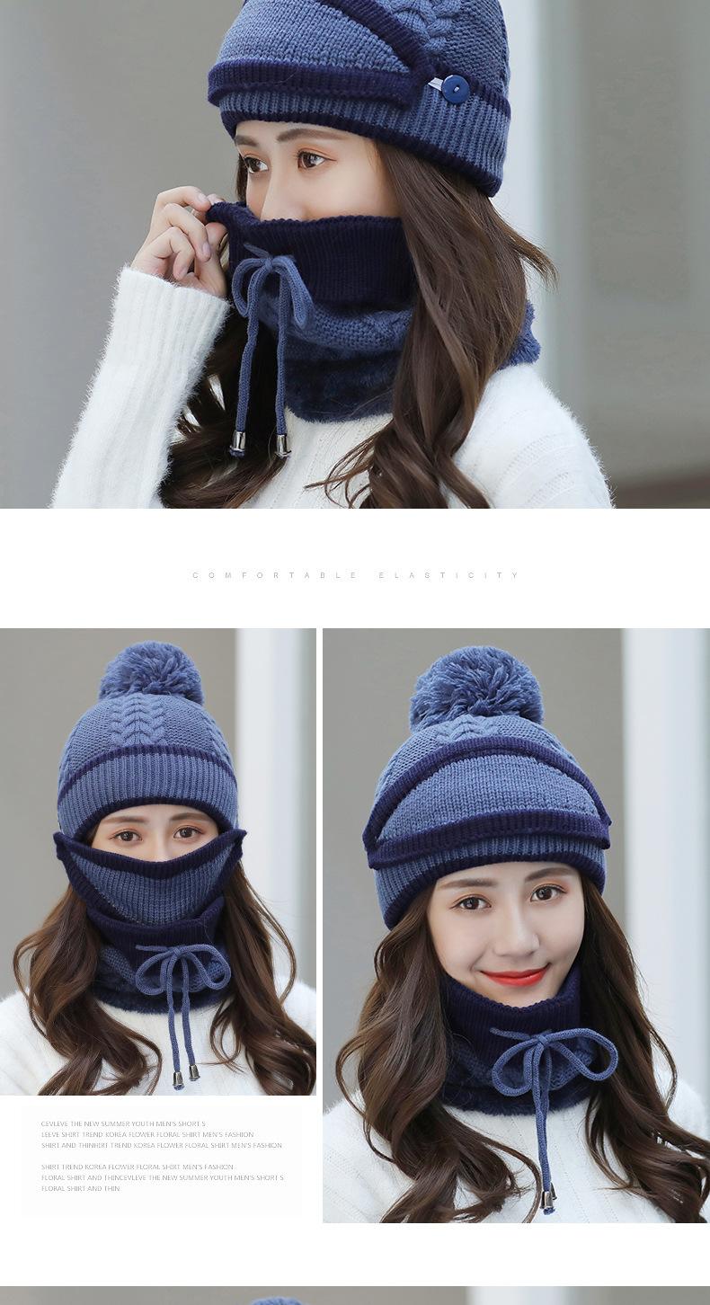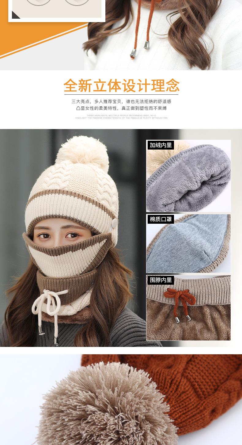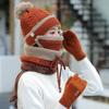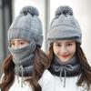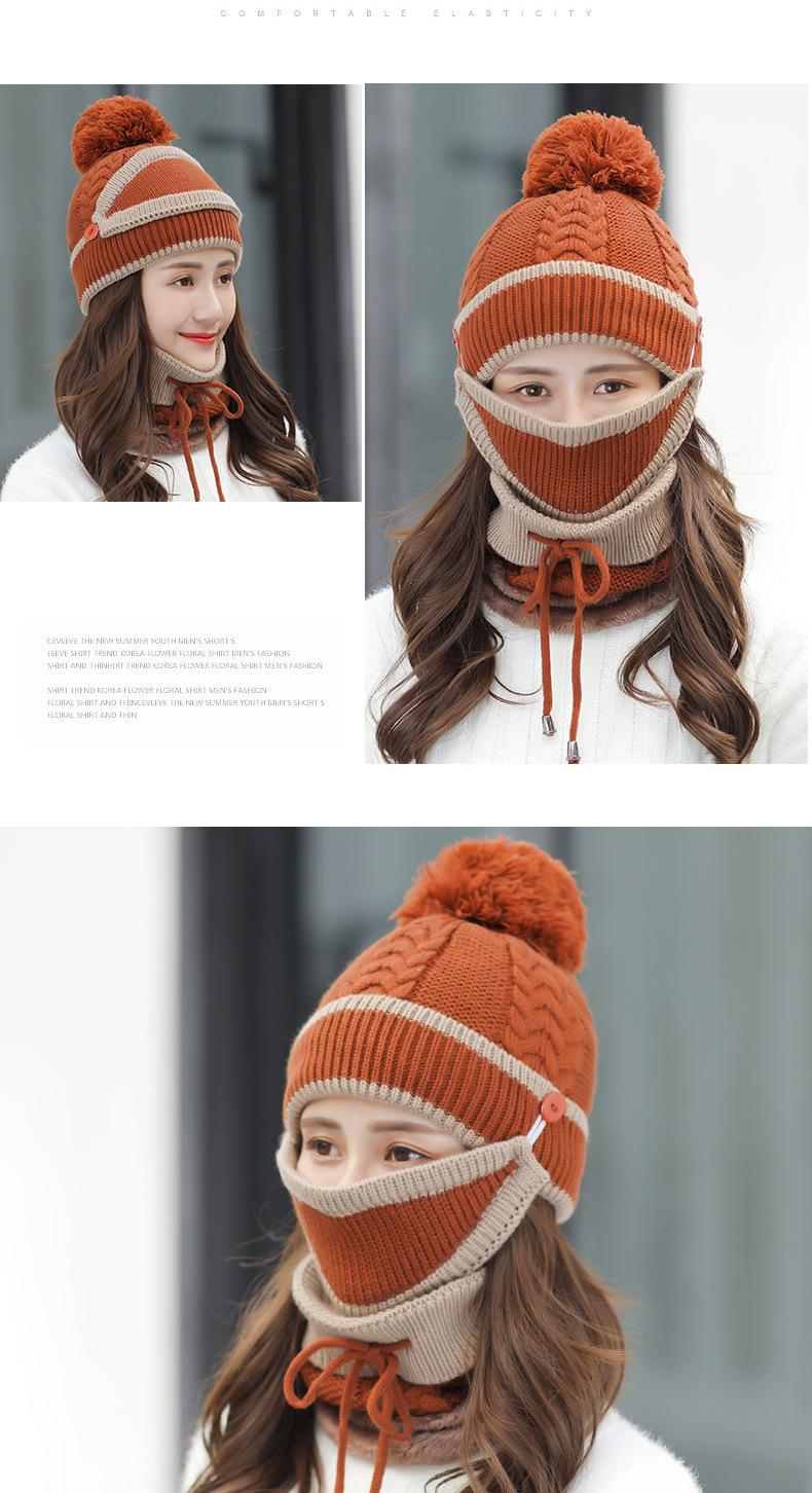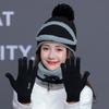 Sombrero para Mujer Otoño e Invierno Coreano Tejido con Bola de Pelo Lana Set Todo Combinable Lindo Cálido Sombrero para Mujer Protección de Oídos para Montar