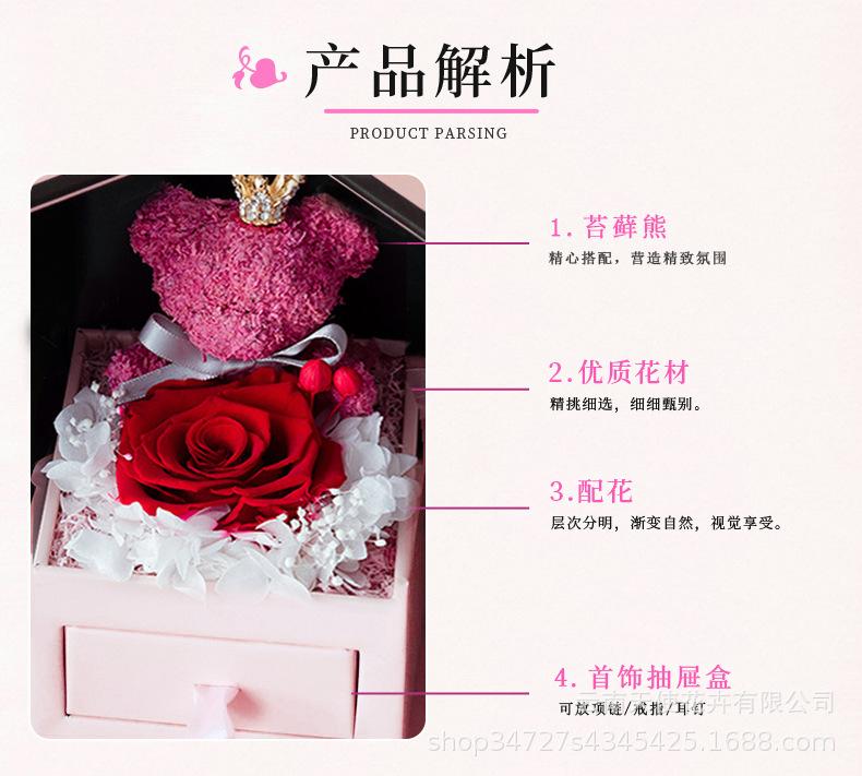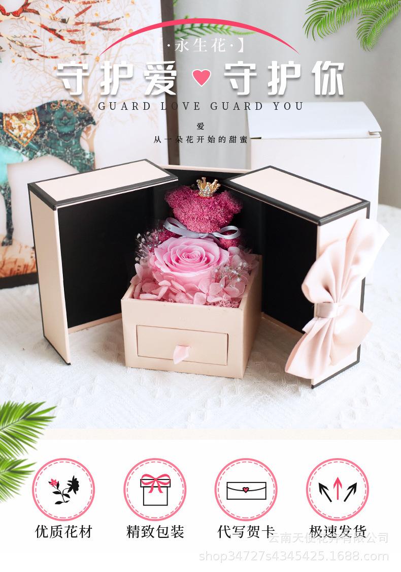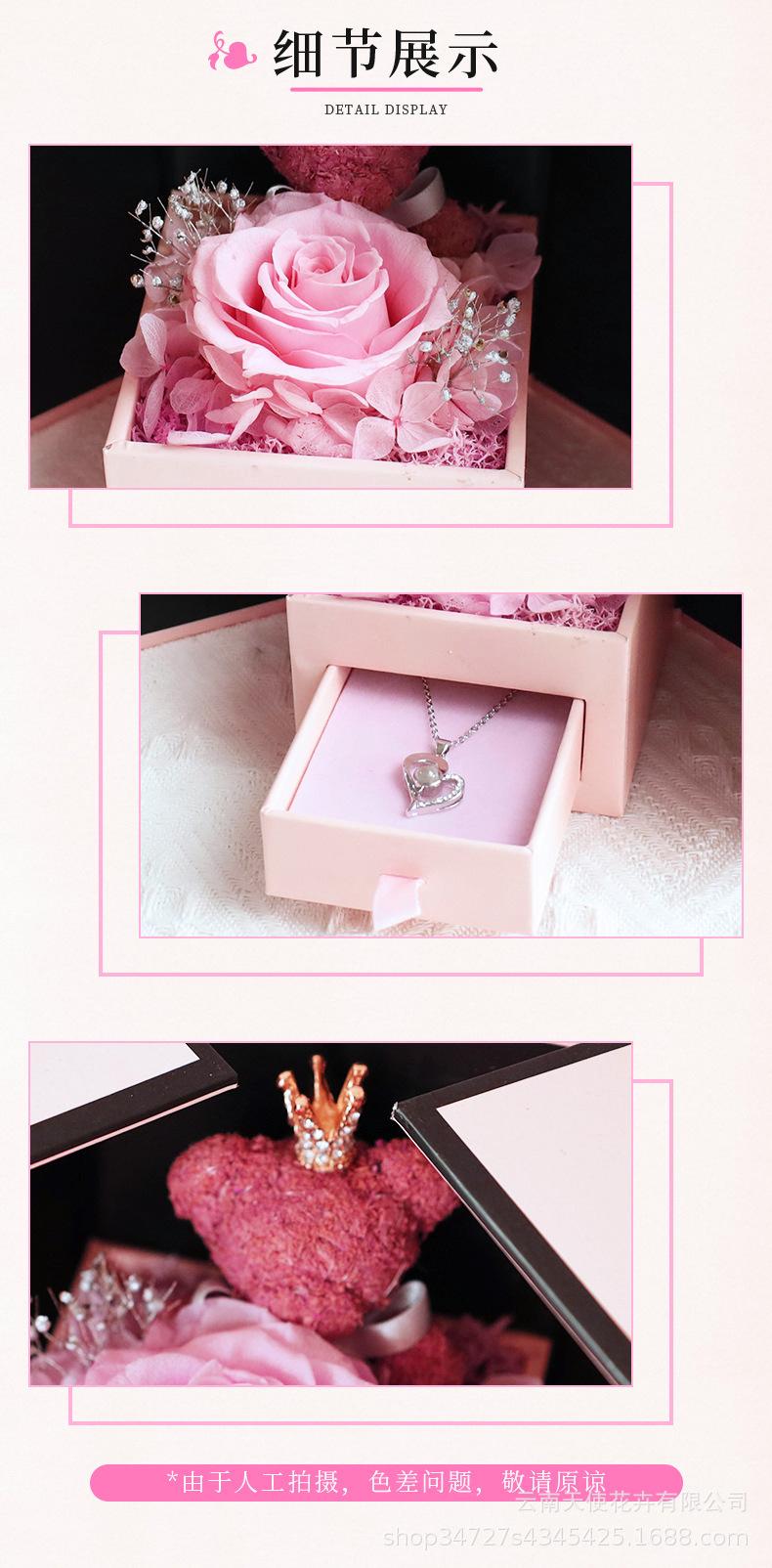 Amazon Transfronterizo Navidad y Día de San Valentín Oso de Doble Puerta Rosa Flor Eterna Collar Creativo Caja de Regalo Personalización