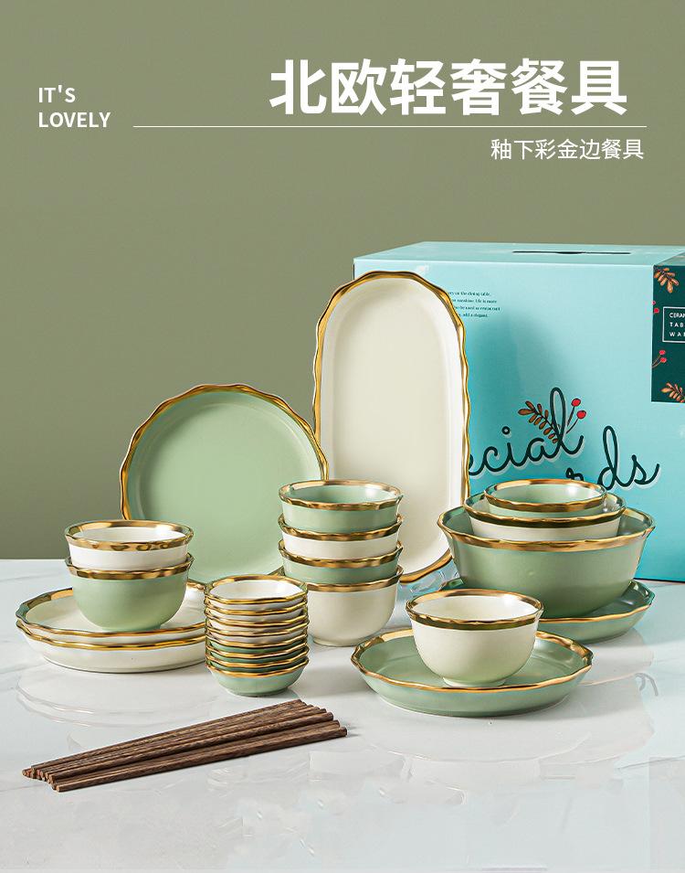Vajilla Estilo Japonés Cerámica Estilo Nórdico Juego de Tazón y Plato Popular en Internet Hogar Lujo Ligero Tazón para Arroz Hogar Plato Plano Plato