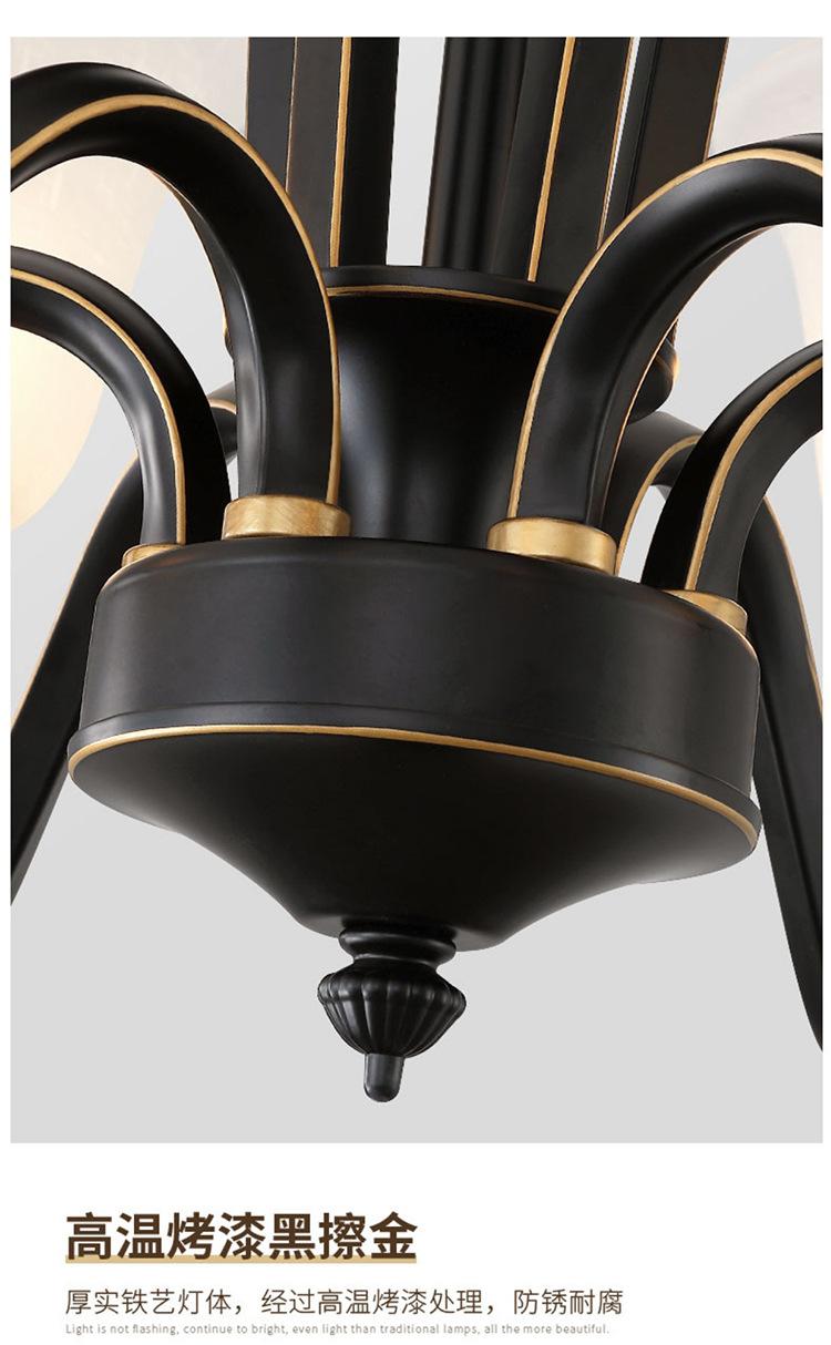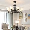 Lámpara de araña de hierro simple para sala de estar americana, lámpara de sala de estar campestre, lámpara de comedor retro, vestíbulo, dormitorio europeo, lámpara de araña negra