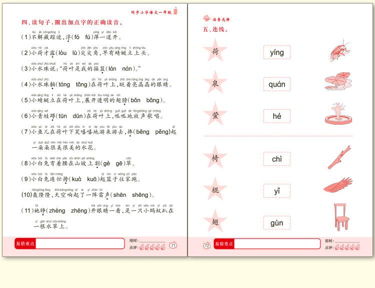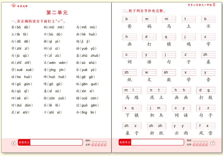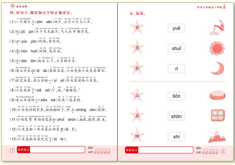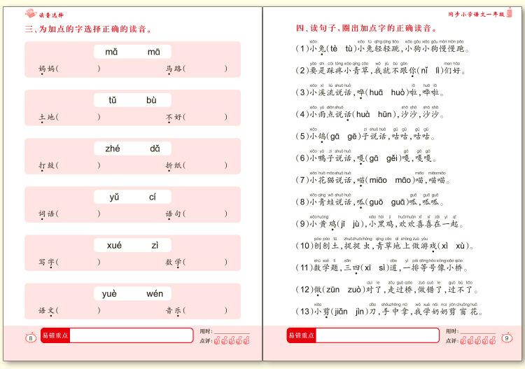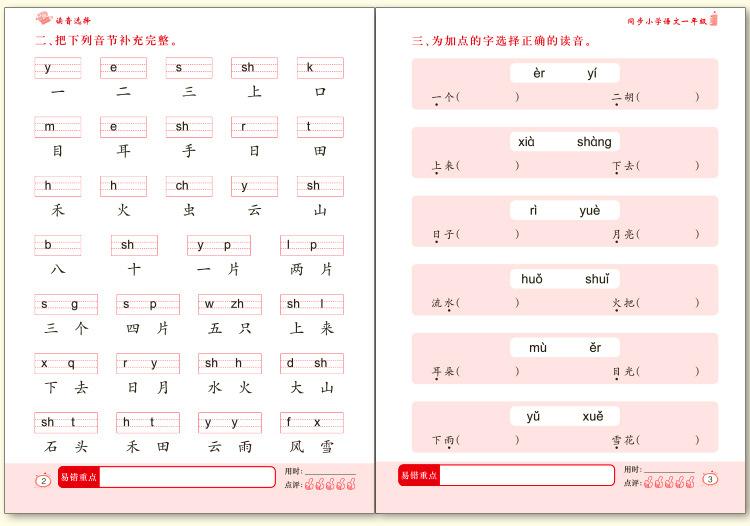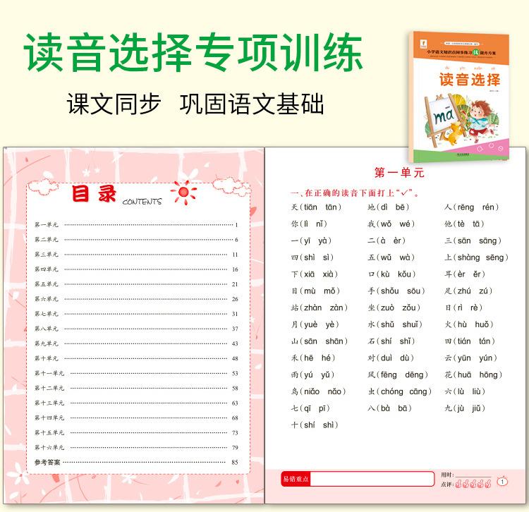 Puntos de Conocimiento de Lengua China de Primaria Práctica Sincrónica Selección de Pronunciación Edición Educación del Pueblo Libro de Entrenamiento Especial de Pinyin Chino de Primer Grado