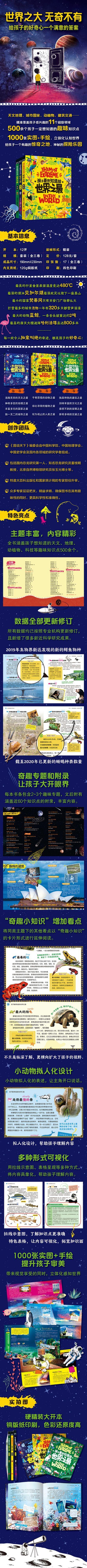 Este libro está dividido en tres volúmenes, con temas ricos y diversos, que van desde el universo, montañas y ríos, animales y plantas, hasta historia, tecnología, arte, etc. Lo grande, lo pequeño, lo corto, lo increíble y lo fascinante: ¡cada "mundo" es asombroso! La maravillosa selección de sitios y la combinación de imágenes y textos llevarán a los niños a tener una comprensión y cognición únicas del mundo de una nueva forma de buscar.