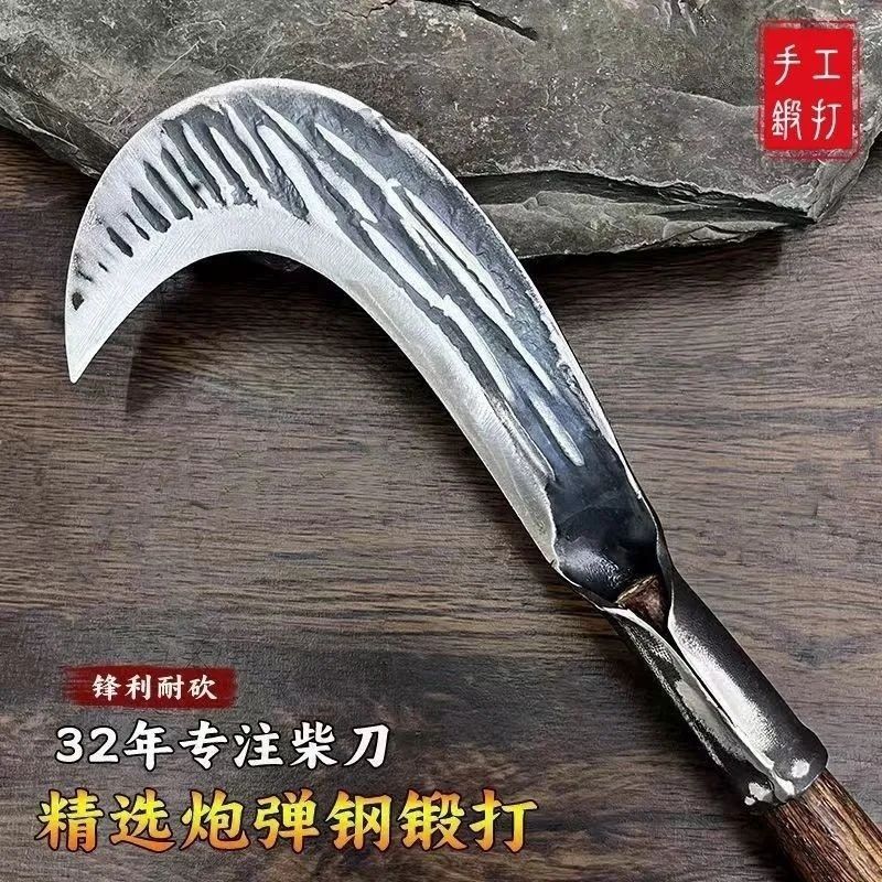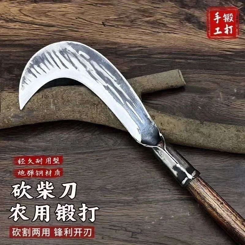 Hacha machete de hoz forjada a mano para cortar árboles y cortar doble propósito agrícola exterior camino abierto pesca recuperación de tierras