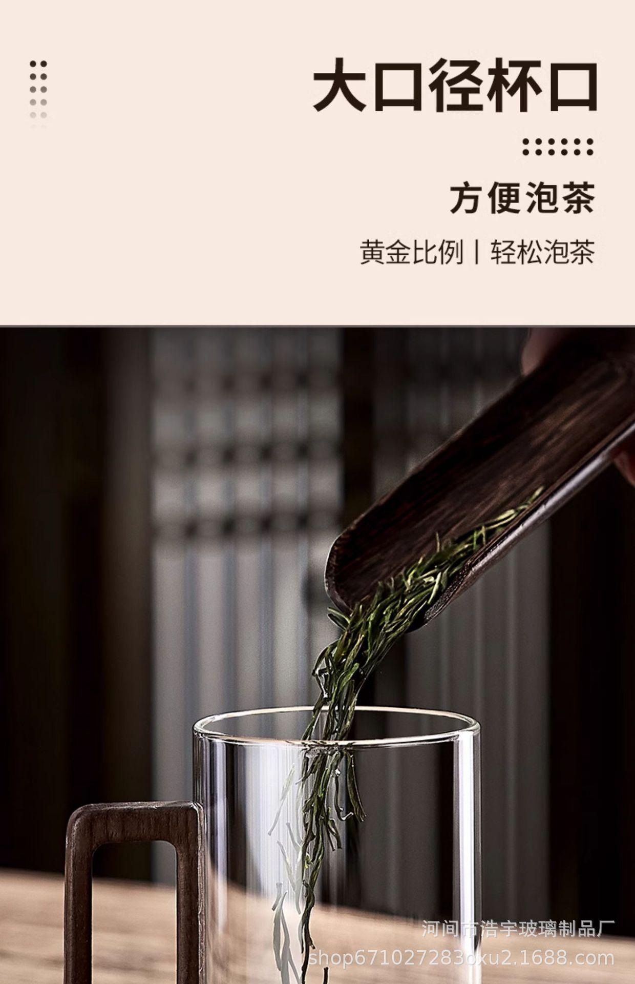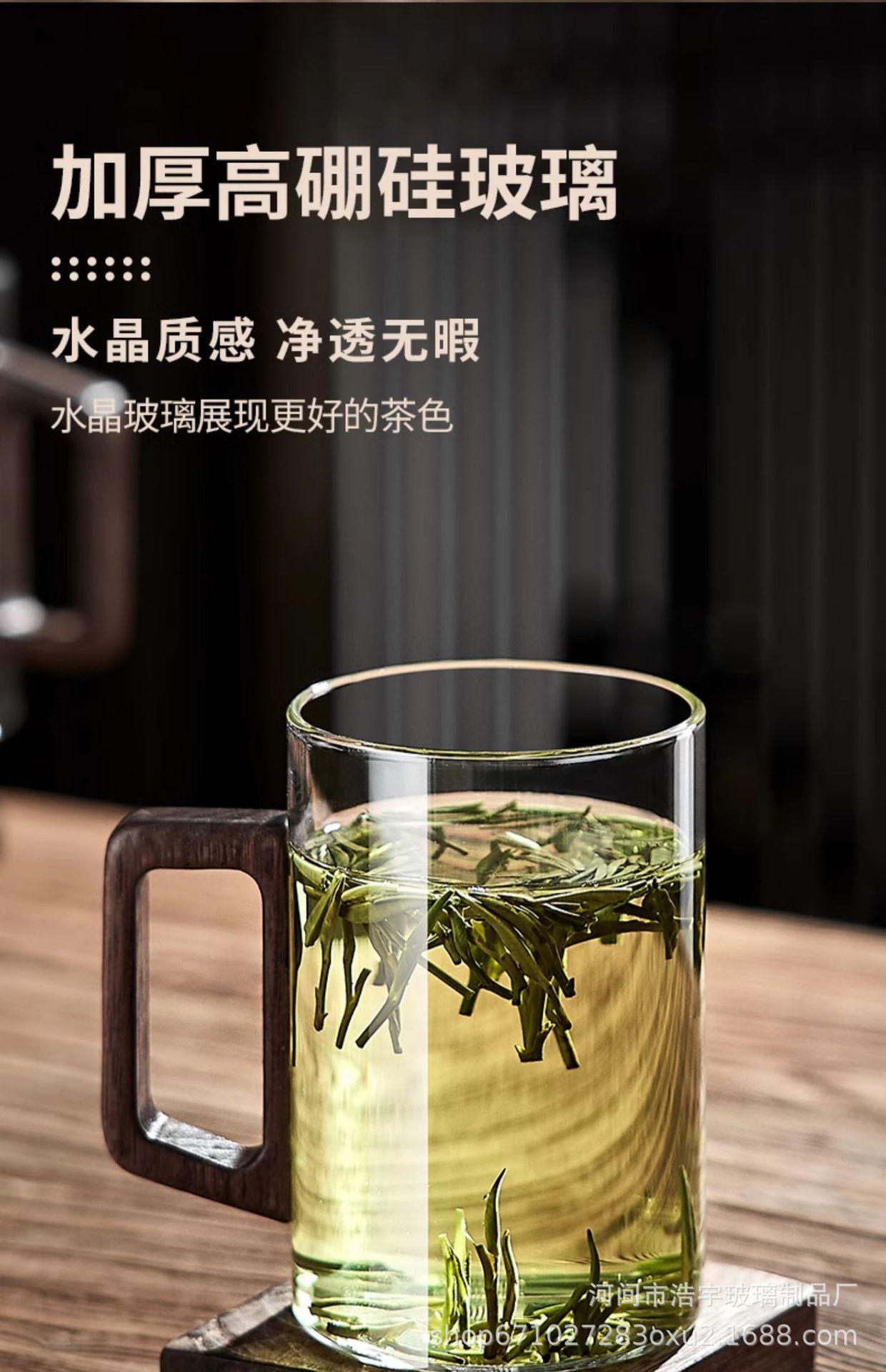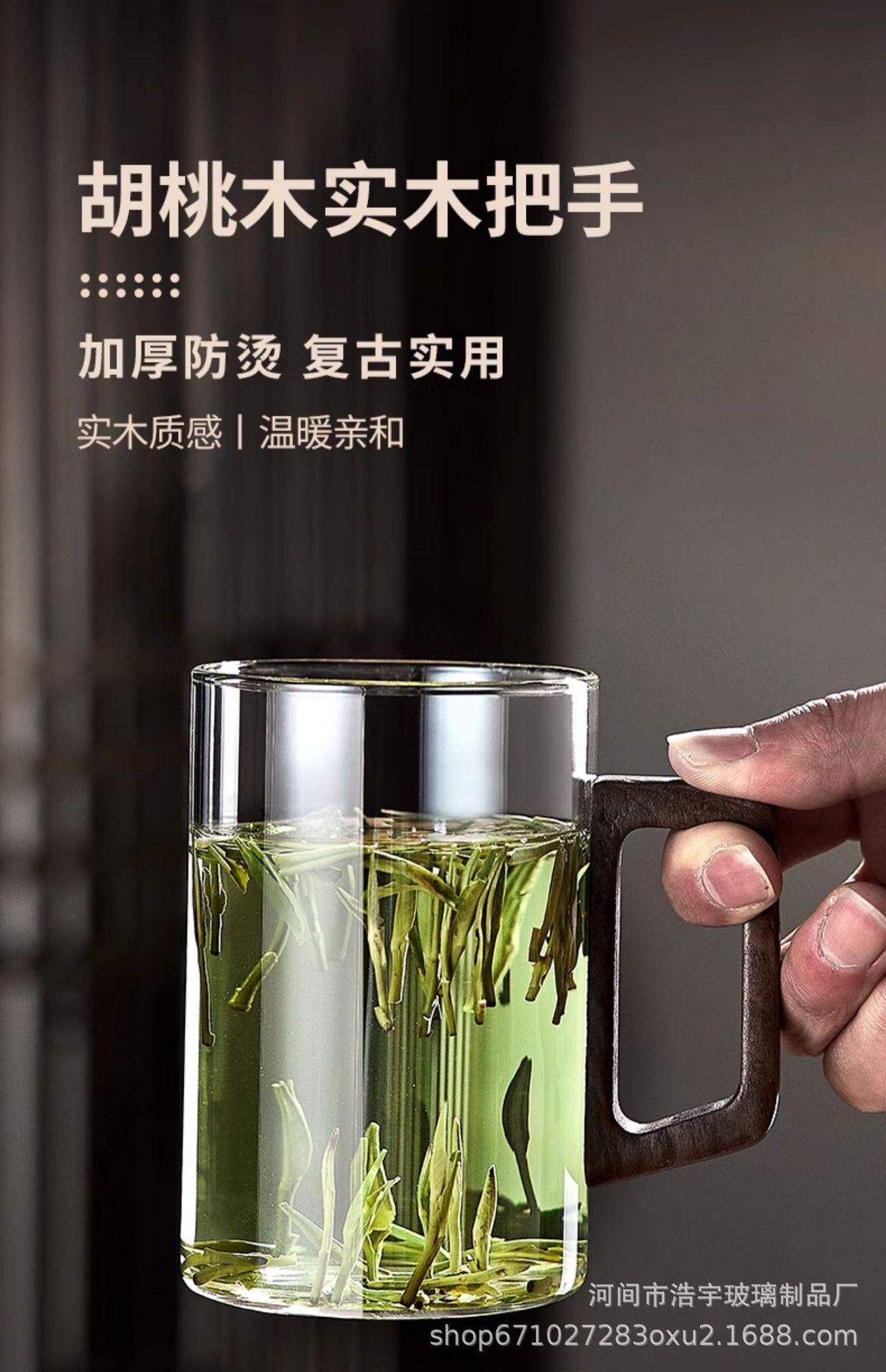 Taza de Té de Vidrio con Mango de Madera, Taza de Té Resistente a Altas Temperaturas, Taza de Té Verde para Oficina, Infusor de Té de Alto Borosilicato, Taza para Beber Té de Gran Capacidad