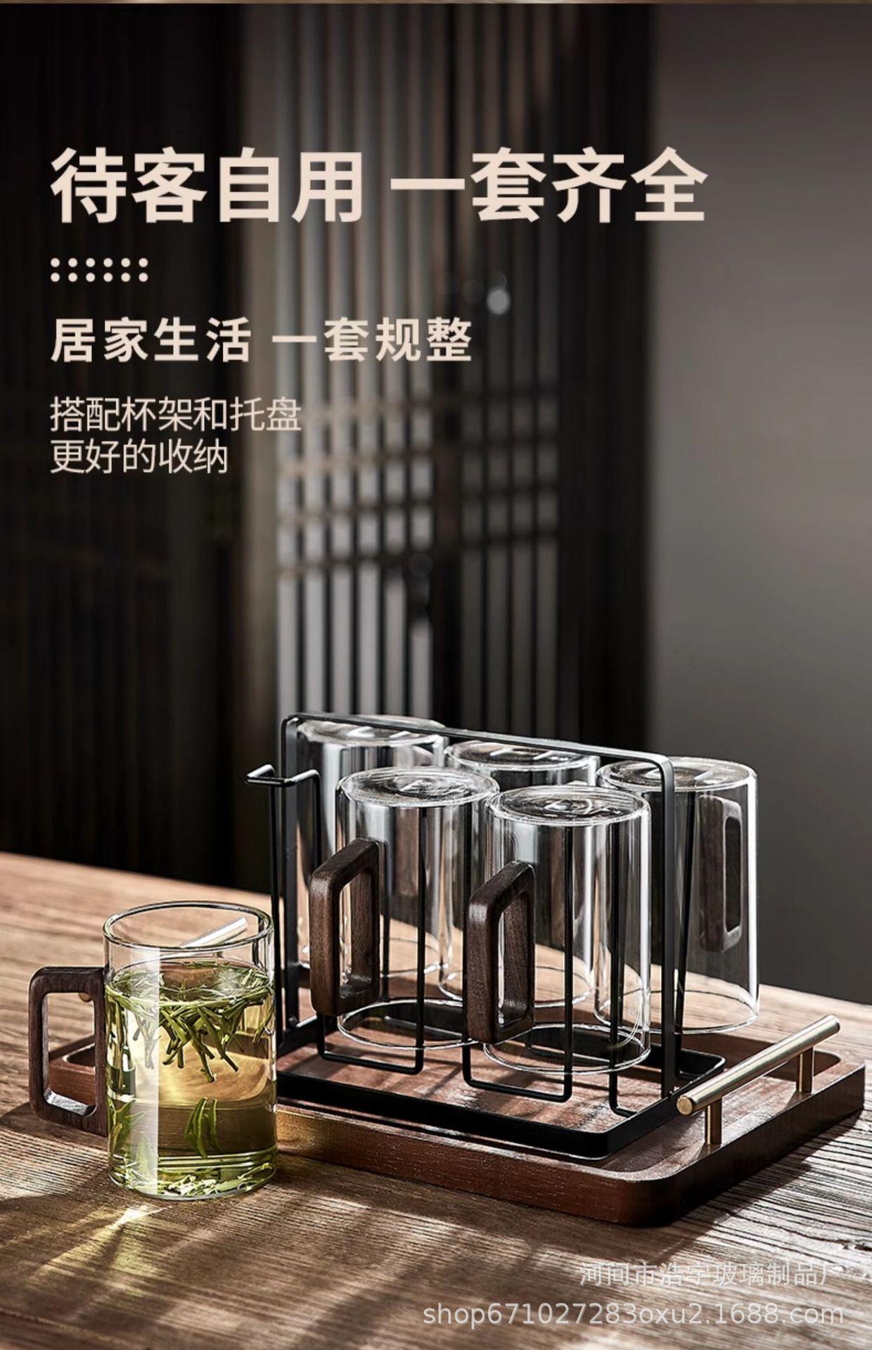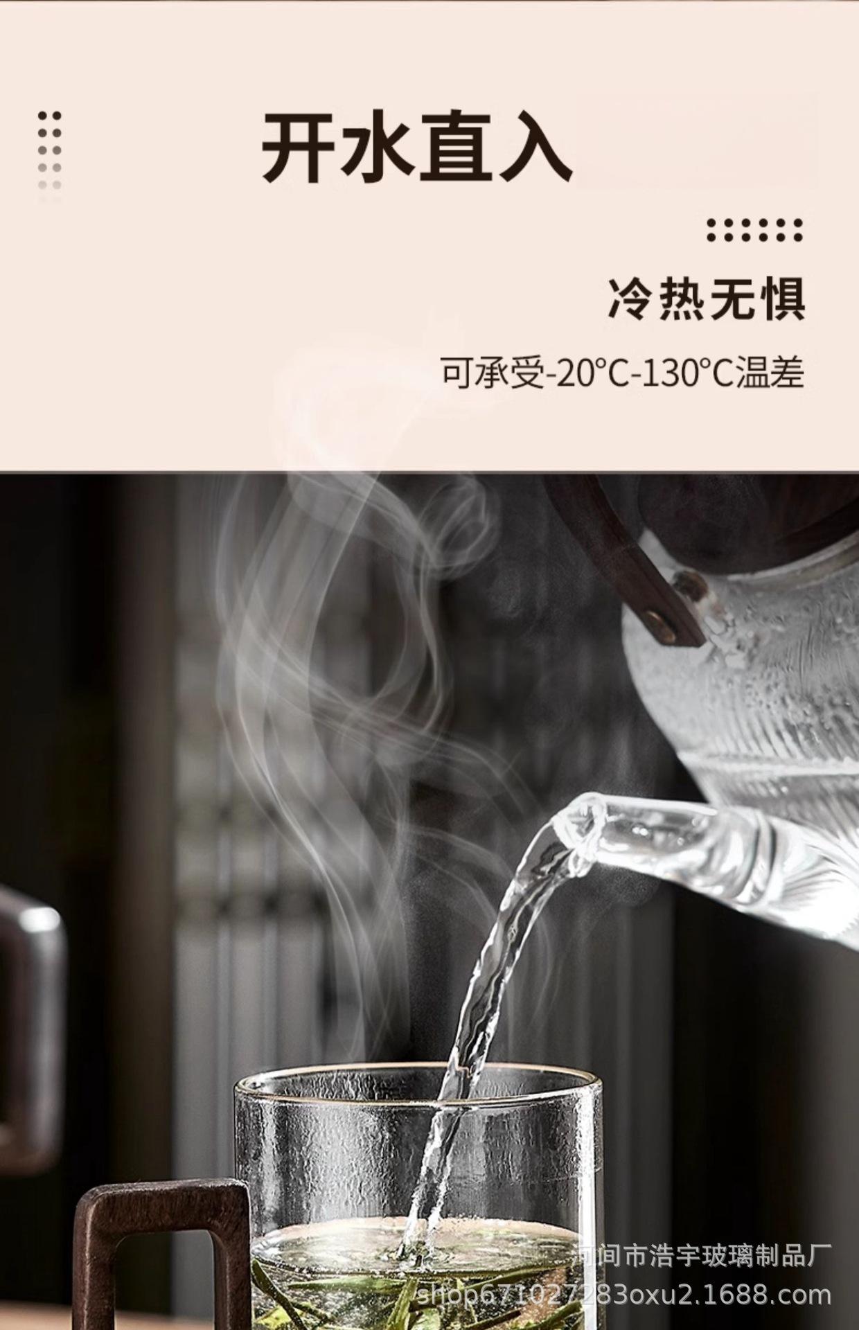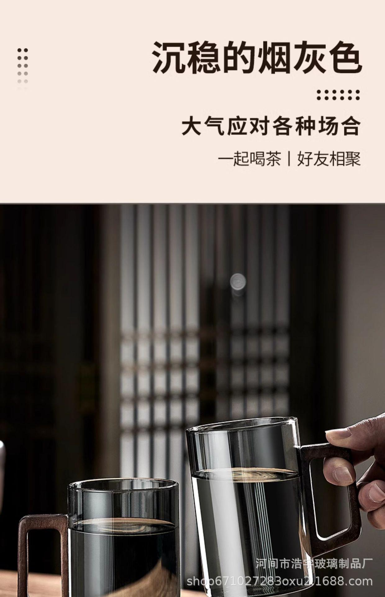 Taza de Té de Vidrio con Mango de Madera, Taza de Té Resistente a Altas Temperaturas, Taza de Té Verde para Oficina, Infusor de Té de Alto Borosilicato, Taza para Beber Té de Gran Capacidad