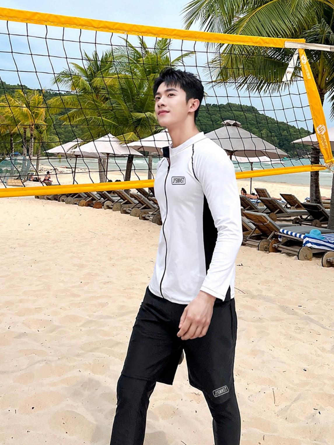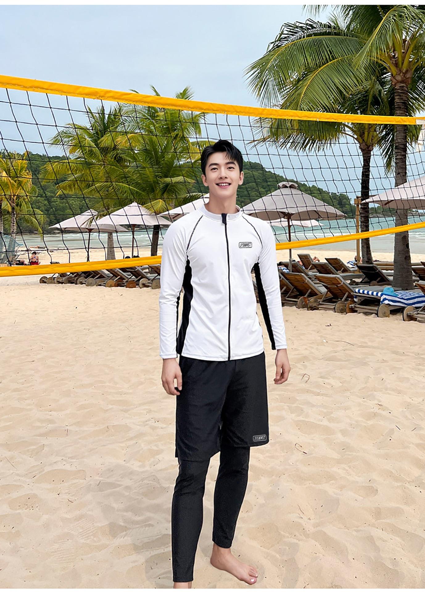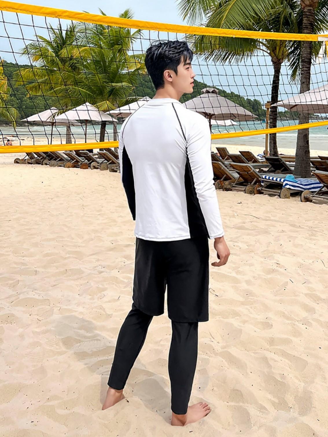 611 men's two-piece set, 611 men's three-piece set, Black nine-point long swimming trunks