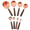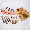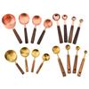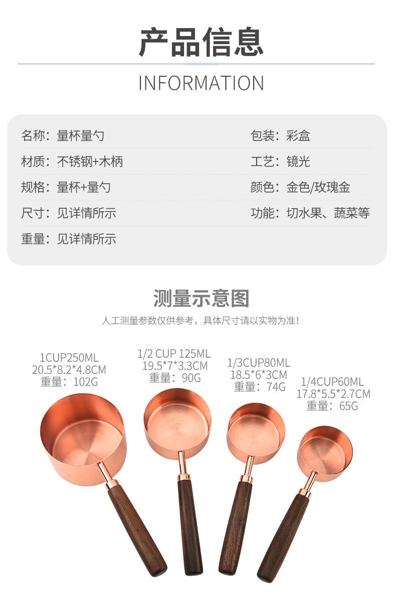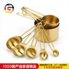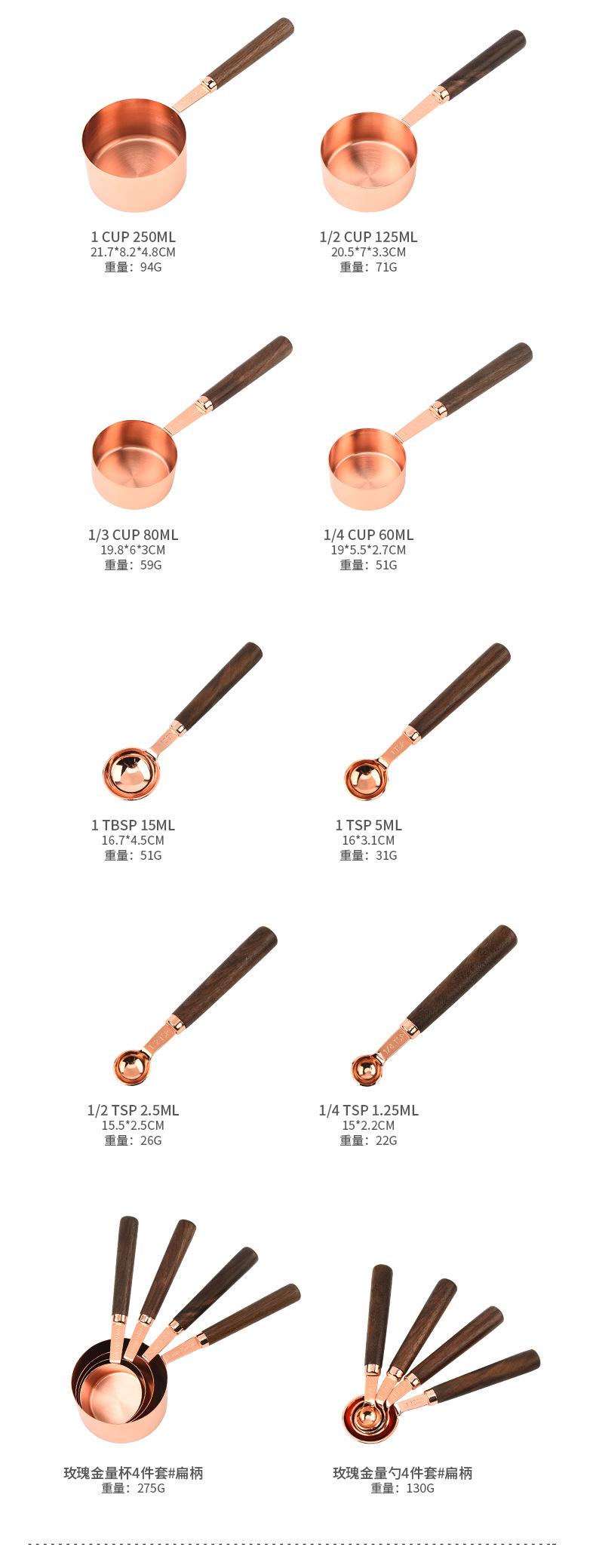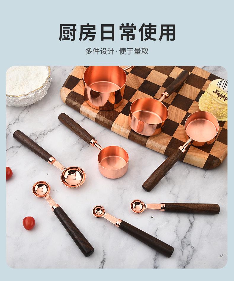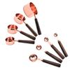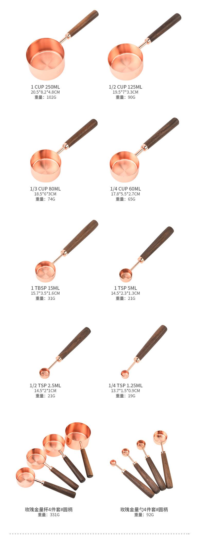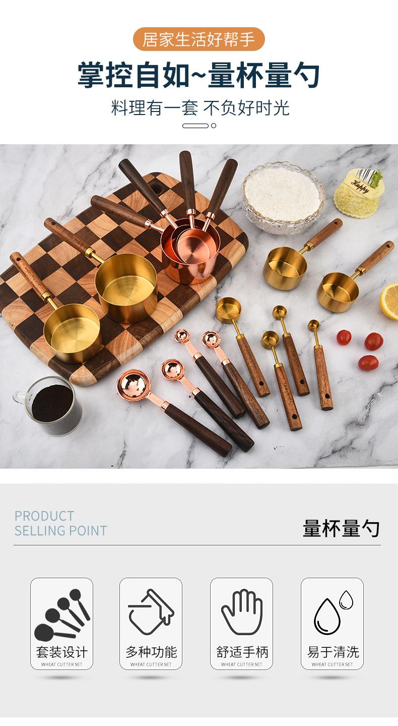 Taza medidora de acero inoxidable chapada en oro, cuchara medidora, herramienta para hornear de cocina, cuchara medidora con mango de madera de acacia, juego de ocho piezas