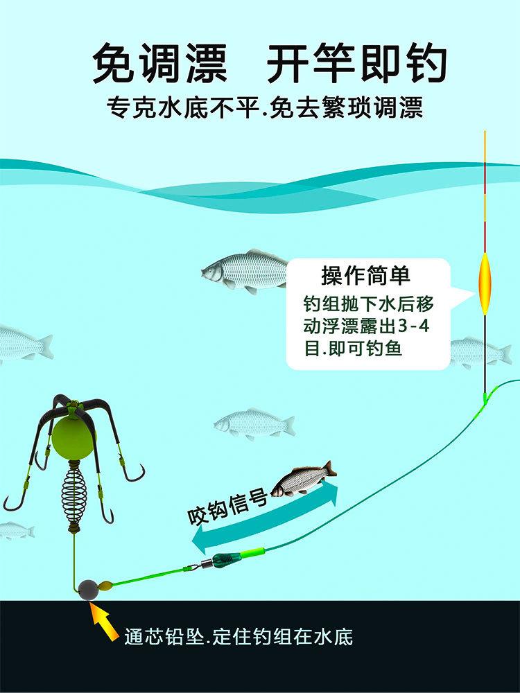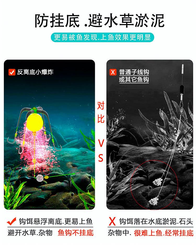 Anzuelo explosivo pequeño anti-fondo anzuelo anti-fondo mil y cuatro anzuelos anti-enganche fondo anti-agua carpa carpa plateada carpa verde caña de mar caña de lance grupo de pesca