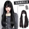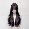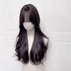 Peluca Xingcheng para mujer, cabello largo, negro, marrón, flequillo al aire, cabello largo y rizado, estilo diario, dulce, Lolita, con auriculares completos