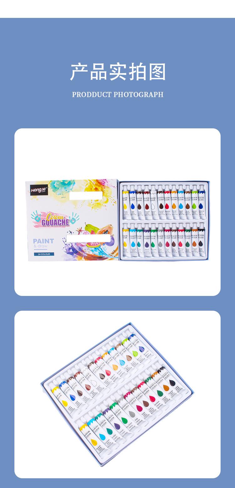 Tubo de Aluminio de 12ML Traje de Pigmento Acrílico Venta al por Mayor Pintura para Niños Pigmento de Acuarela 12 Colores 24 Colores Pigmento Gouache En Caja