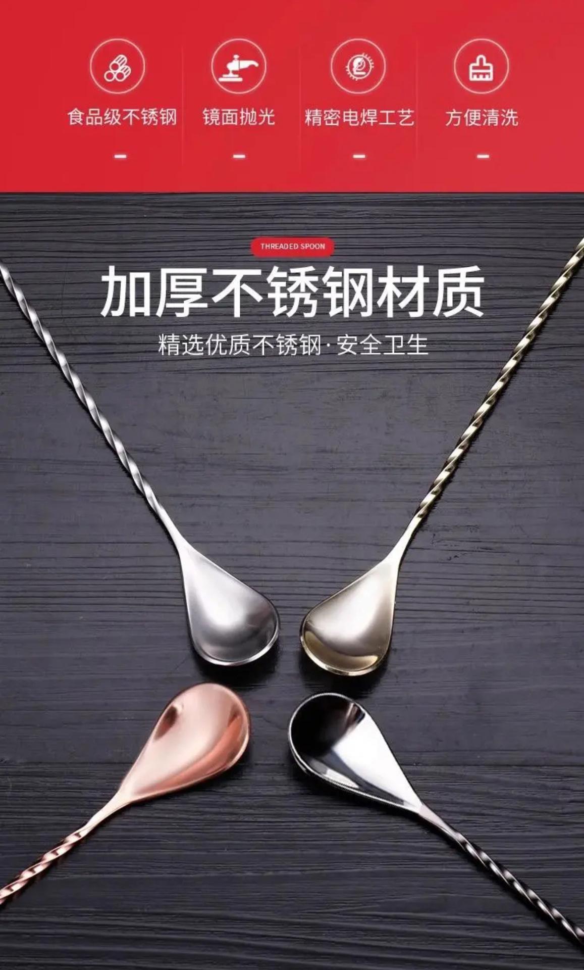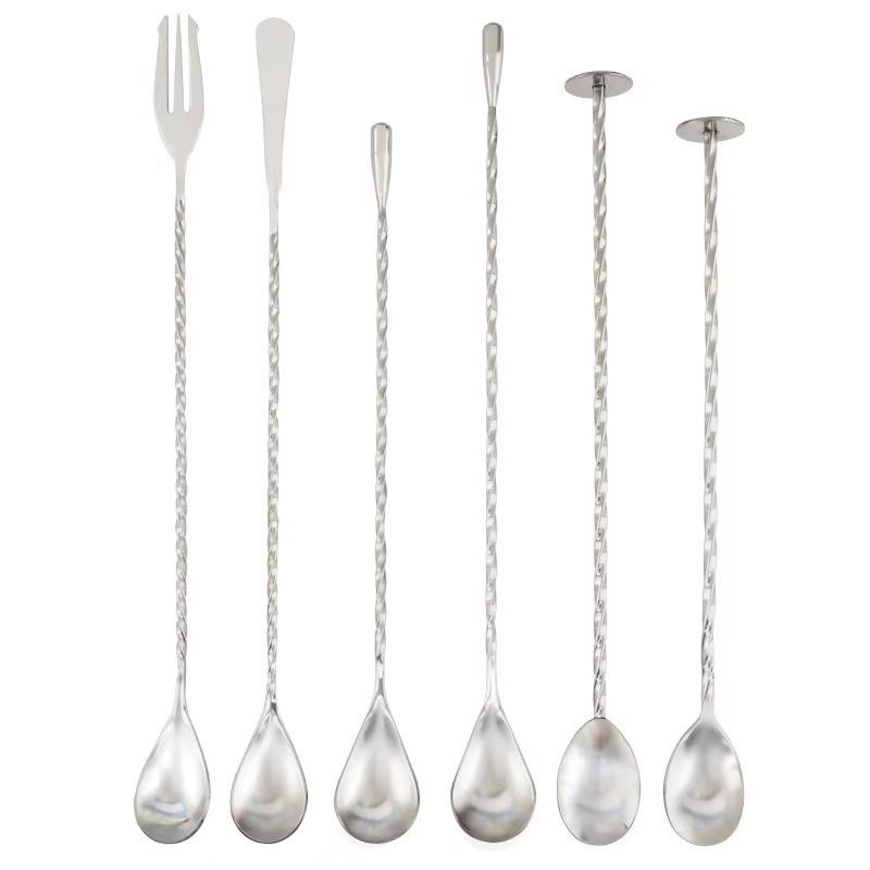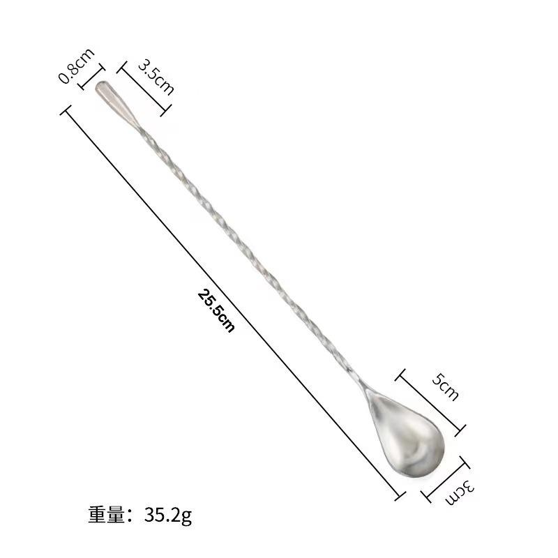 Cuchara de Bar de Acero Inoxidable 304 con Forma de Gota de Agua Cuchara de Bar de Rosca Fina Palo Agitador para Cócteles Cuchara Mezcladora de Bar con Forma de Lágrima