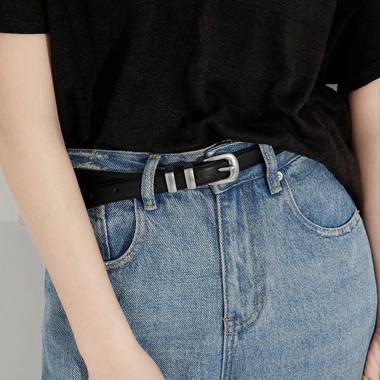 Cinturón Negro Pequeño Mujer Estilo Ins Cinturón para Jeans Delgado Moda Combinable Pantalones de Hombre con Decorativo Vintage de Moda para Mujer