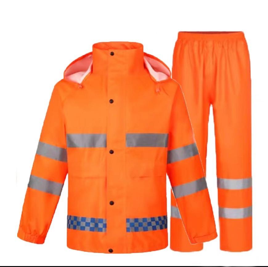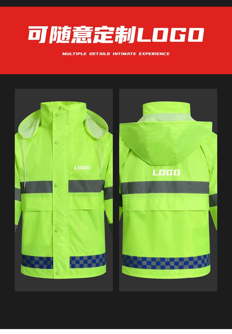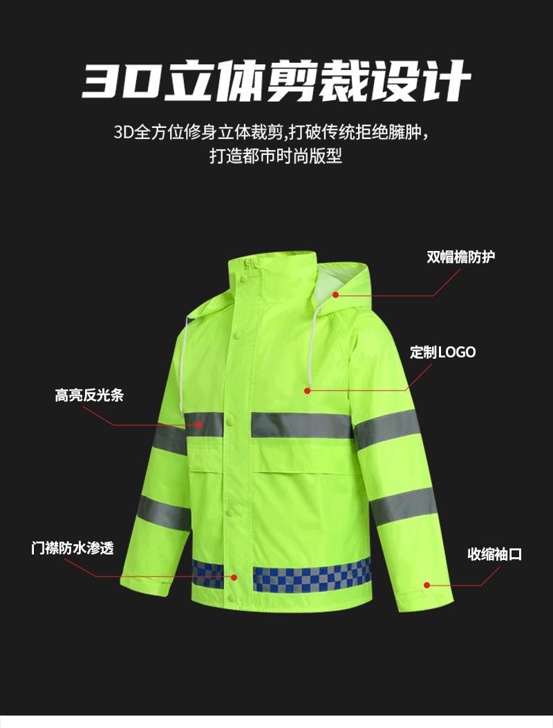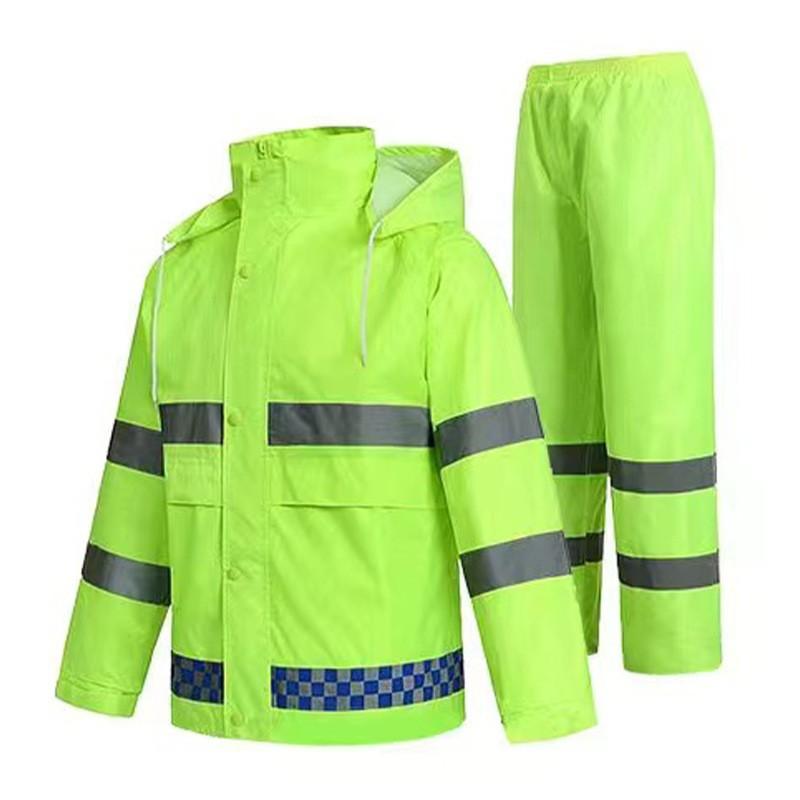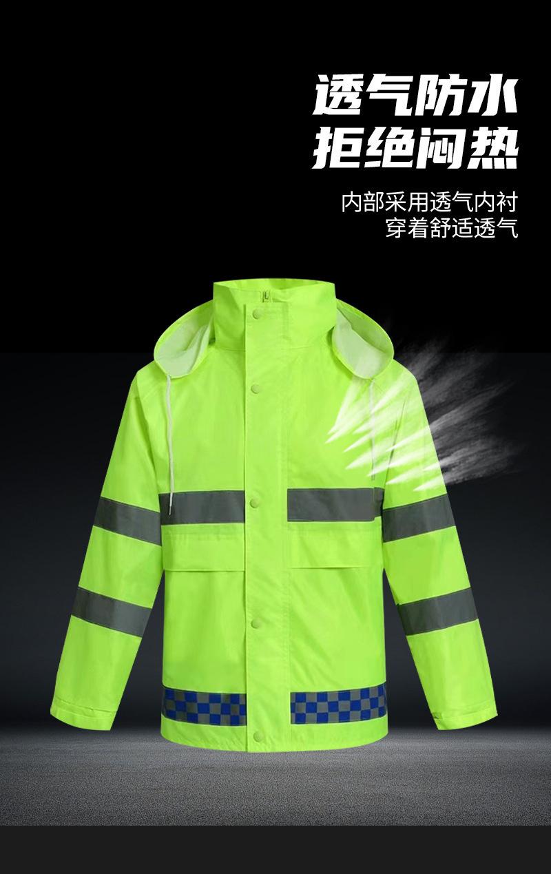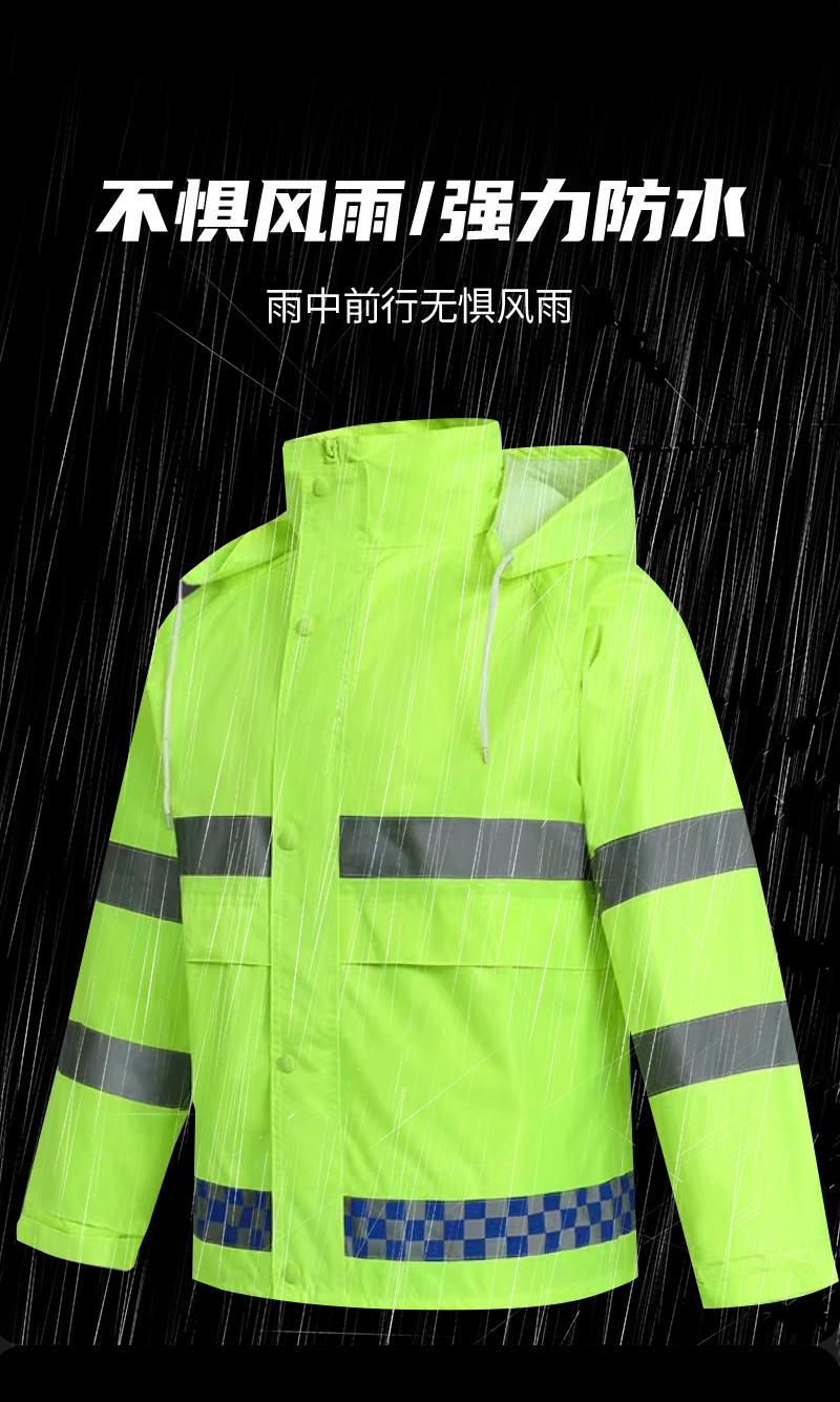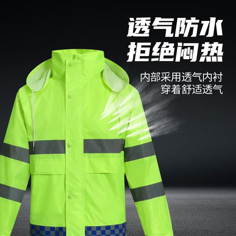 Conjunto de Impermeable y Pantalones de Lluvia de Doble Capa para Servicio de Tráfico, Patrulla al Aire Libre, Rescate, Saneamiento, Administración Vial, Impermeable y Pantalones Reflectantes Divididos
