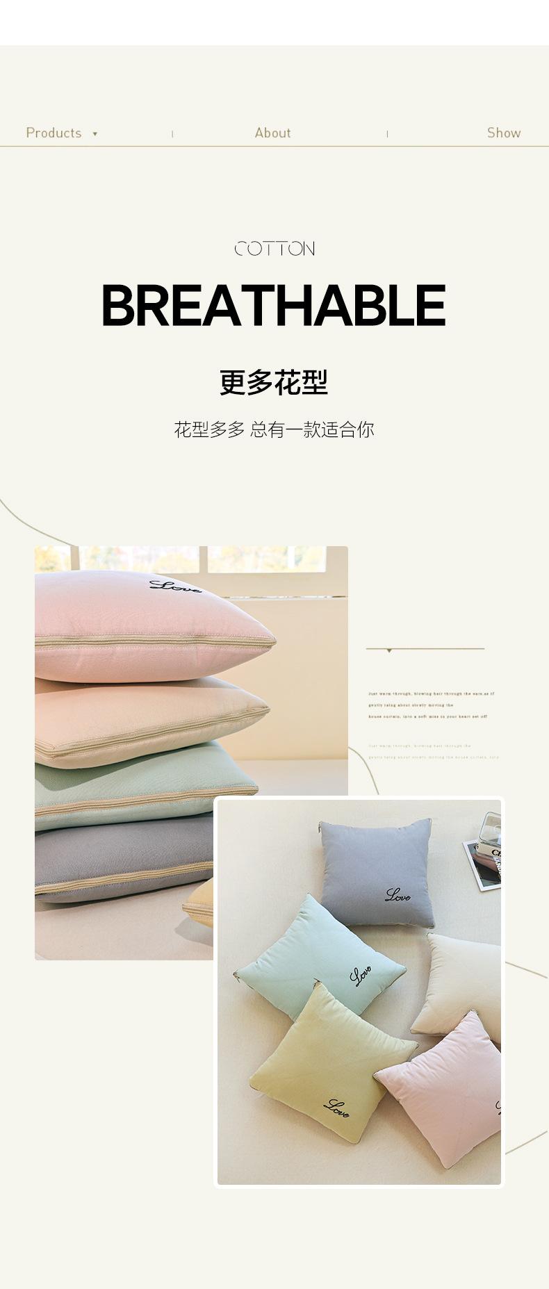 Earthy yellow-solid color cotton linen pillow quilt, Pink jade-solid color cotton linen pillow quilt, Gray-sol...