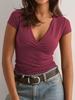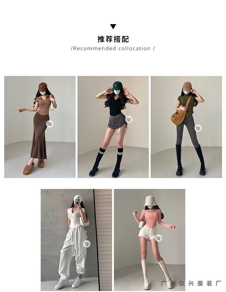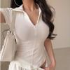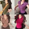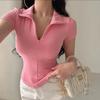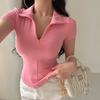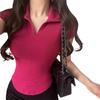 Verano transfronterizo para mujer nuevo Y2K estilo europeo y americano chica hot sexy ajustado solapa con cremallera manga corta camiseta de yoga