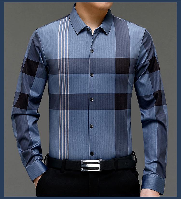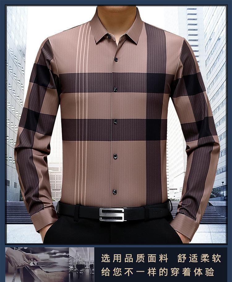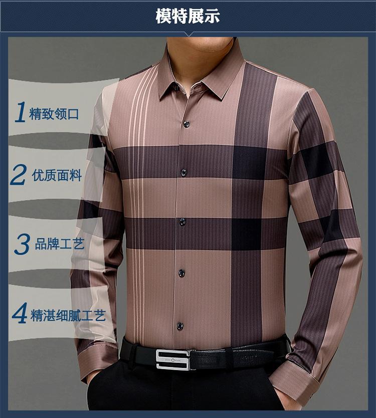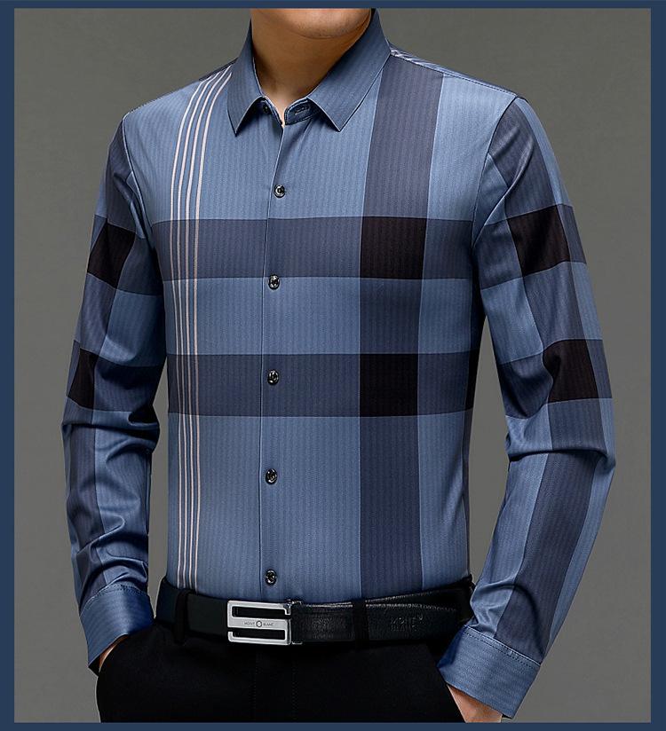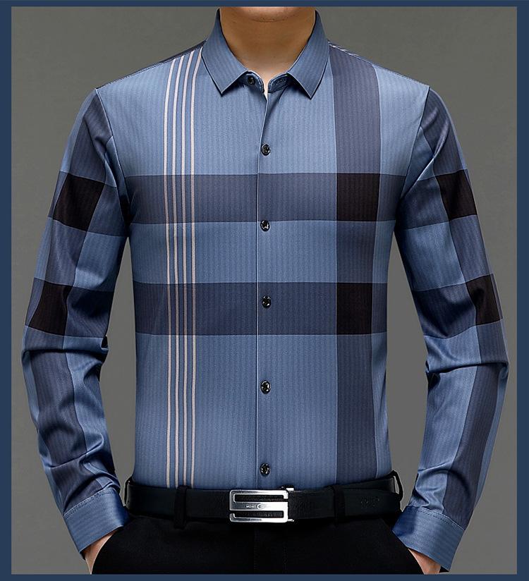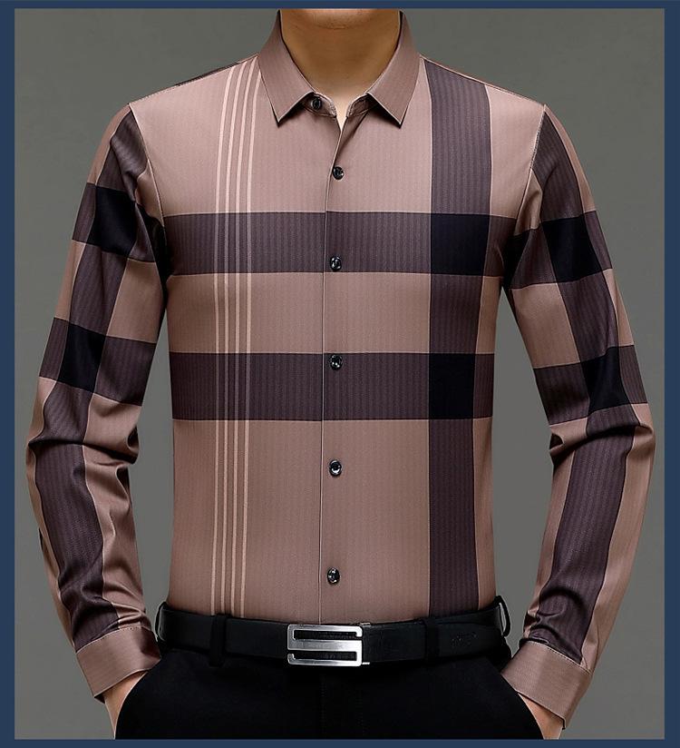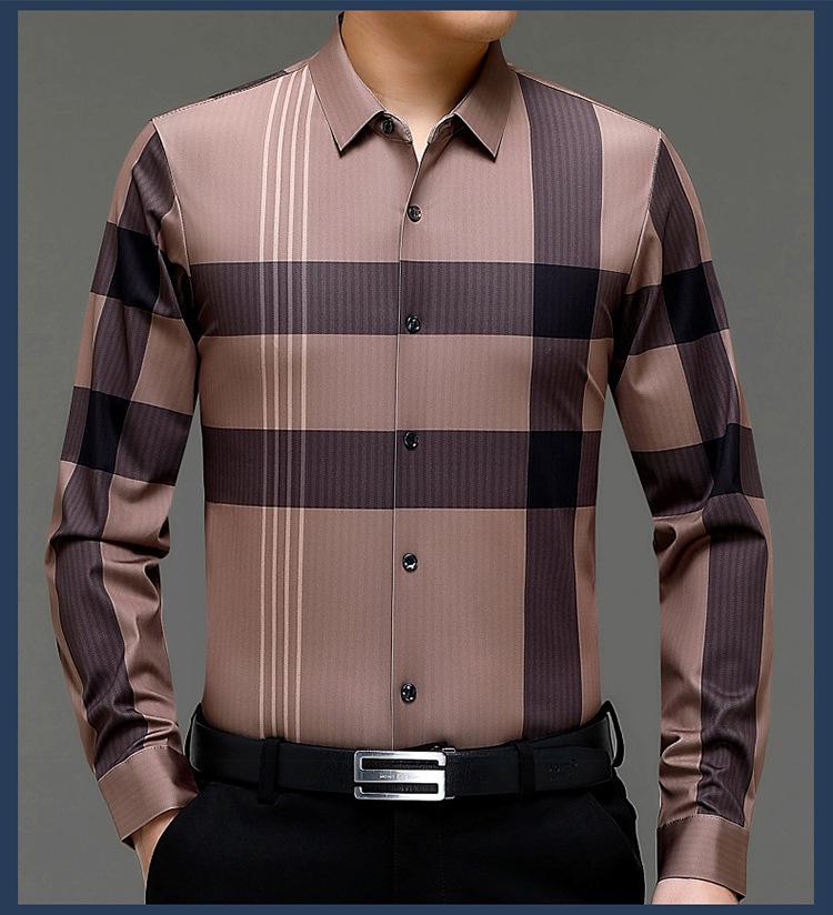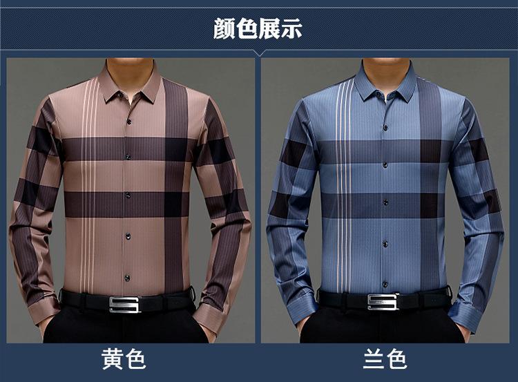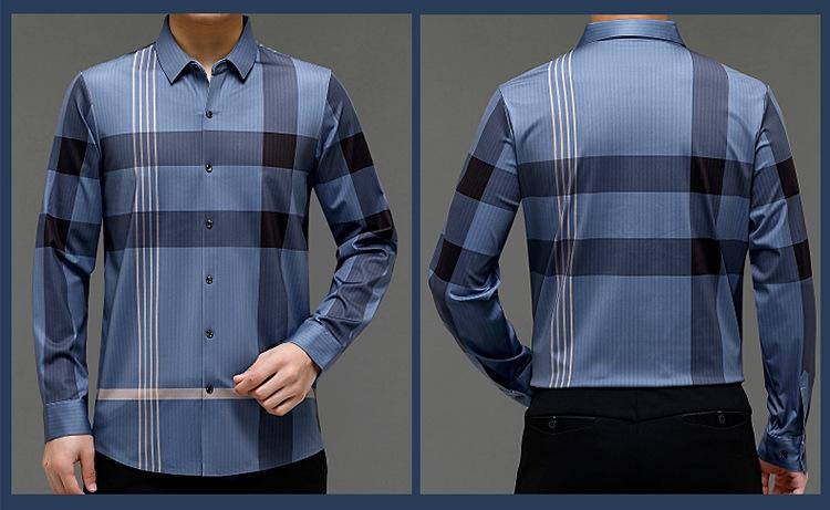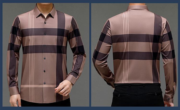Camisa Nueva de Primavera y Otoño 2026 de Manga Larga para Hombre, Seda de Morera, Camisa a Cuadros Seamless Business Casual para Hombre de Mediana Edad para Papá