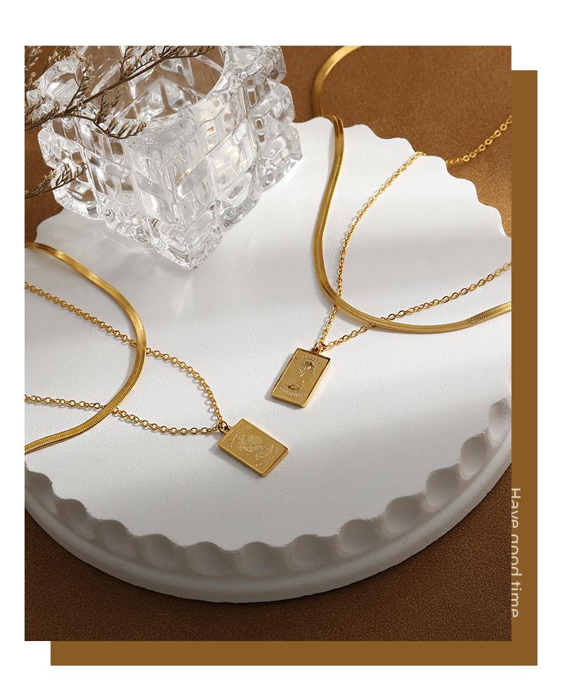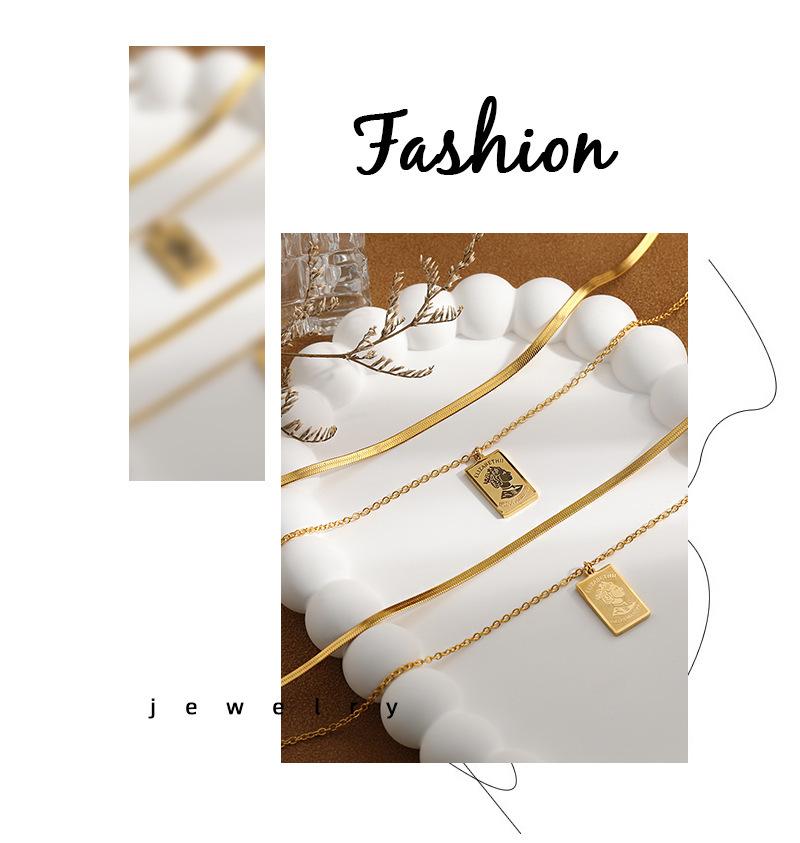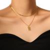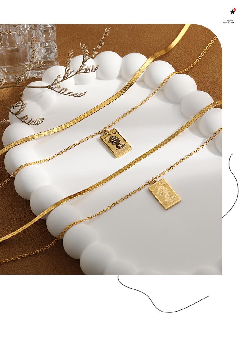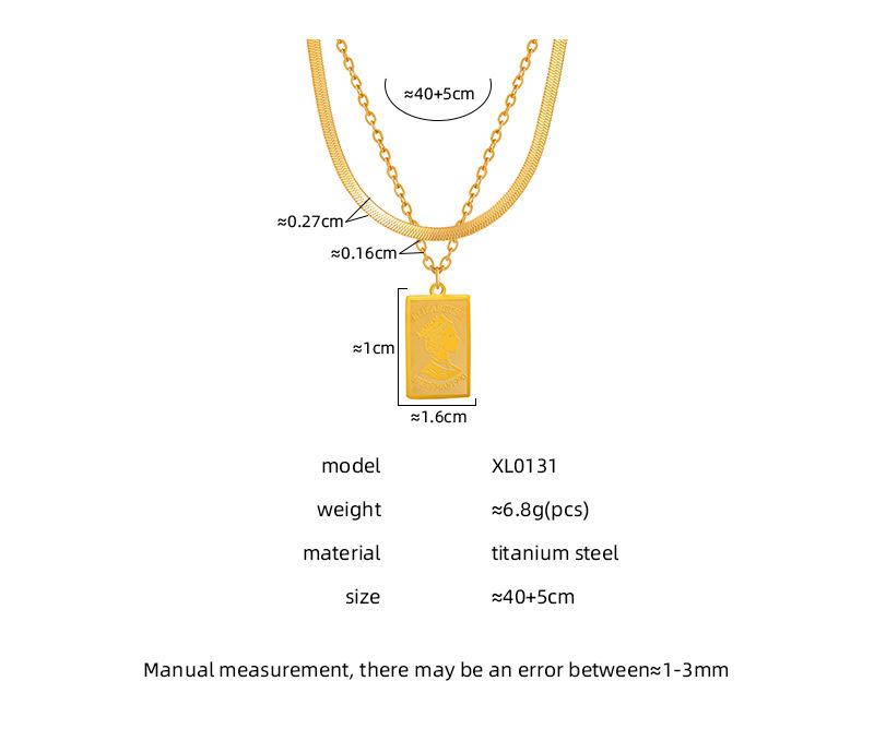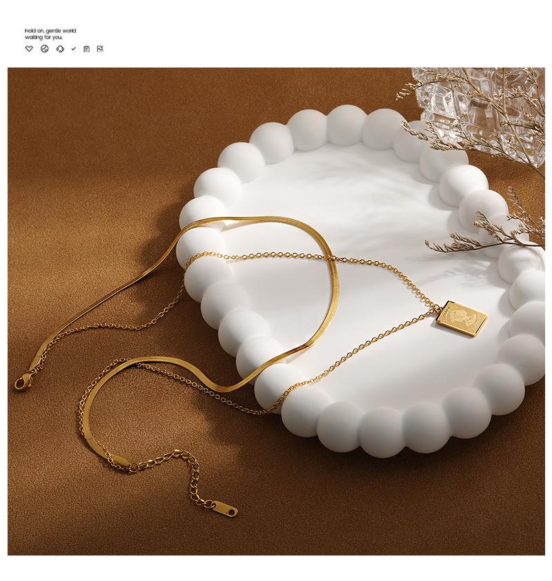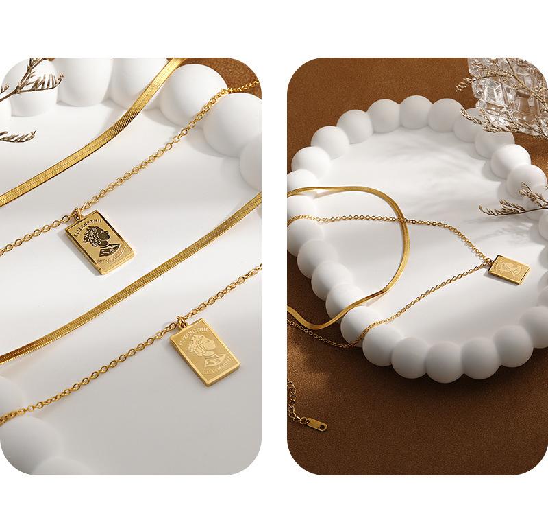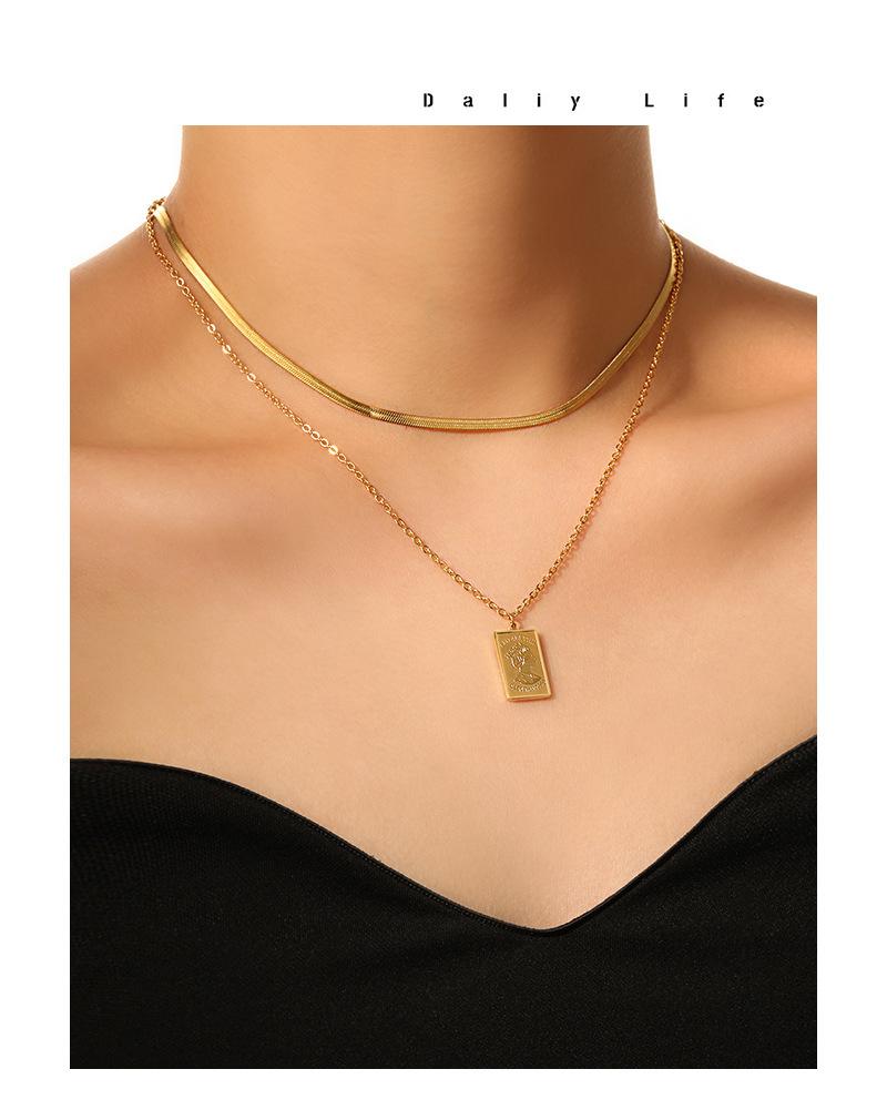 Cadena Plana de Doble Capa de Hueso de Serpiente Europea y Americana para Mujer, Diseño Apilable, Colgante Isabelino Cuadrado de Marca de Alta Gama, Cadena para Clavícula de Acero al Titanio