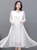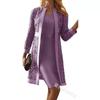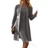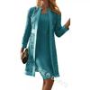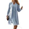 Cárdigan de Encaje de Color Sólido de Primavera y Otoño para Mujer, Vestido de Cuello Redondo de Dos Piezas, Comercio Exterior de Amazon