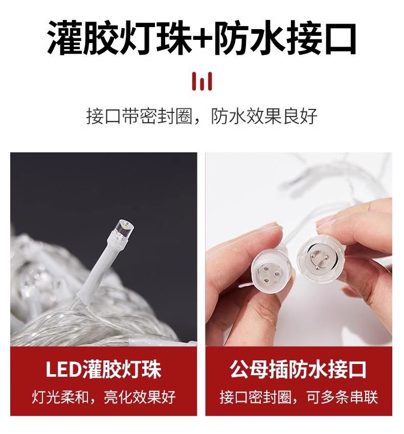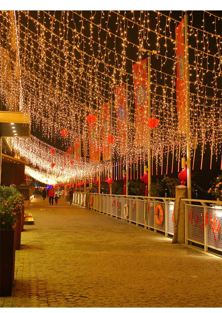 Luz de cascada de barra de hielo LED rojo neto, cadena de luces de estrellas por todo el cielo, impermeable para exteriores, cortina de agua, lámpara de agua, decoración navideña, luces de colores