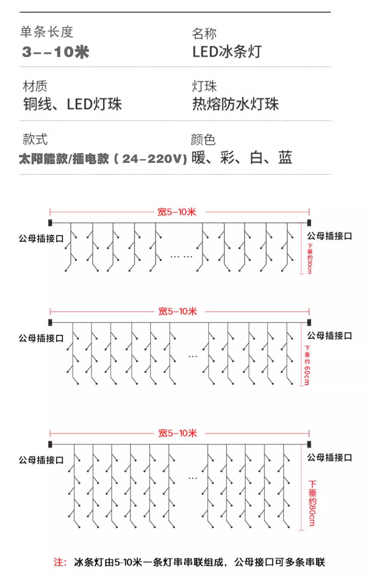 Blue 10m long × 0.3m high, 40 droplets, 120 lights (flush models can be connected in series) - plug wires are taken separately