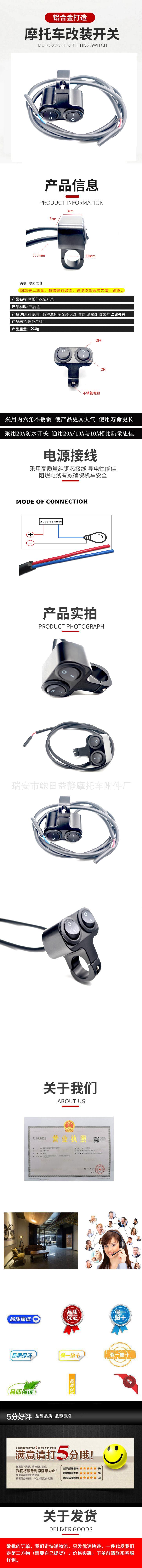 Interruptor de modificación de accesorios de motocicleta aleación de aluminio faro negro interruptor de segunda marcha foco LED luz de explosión interruptor de alimentación