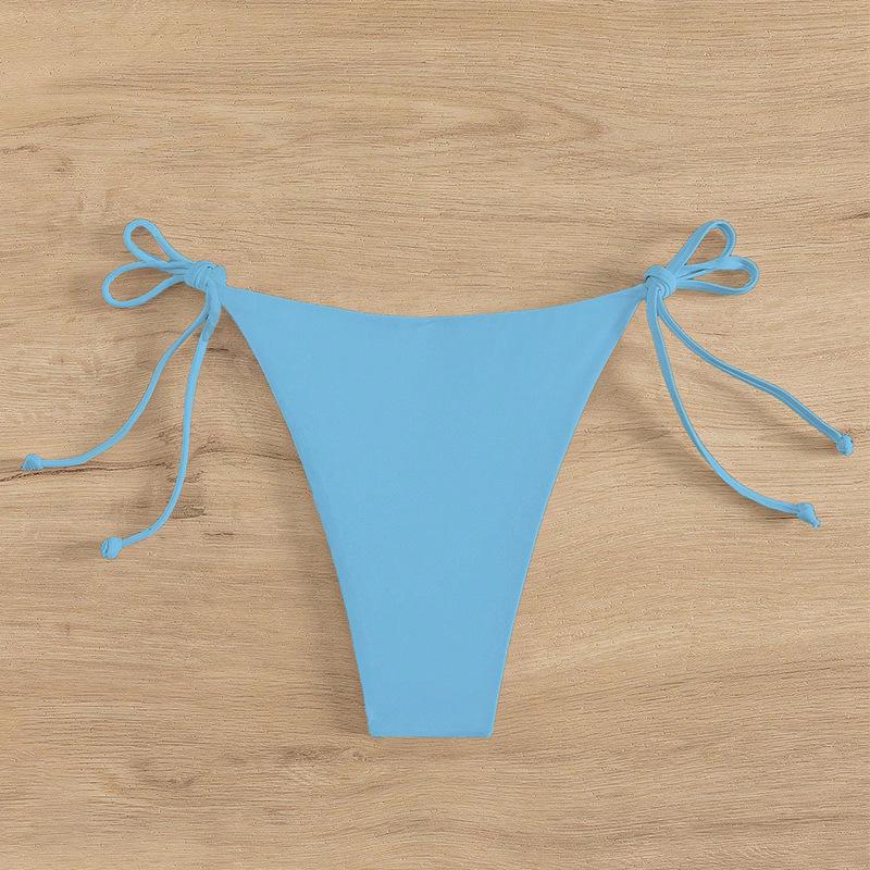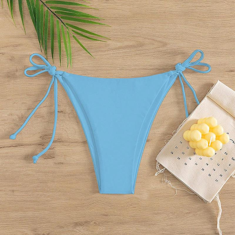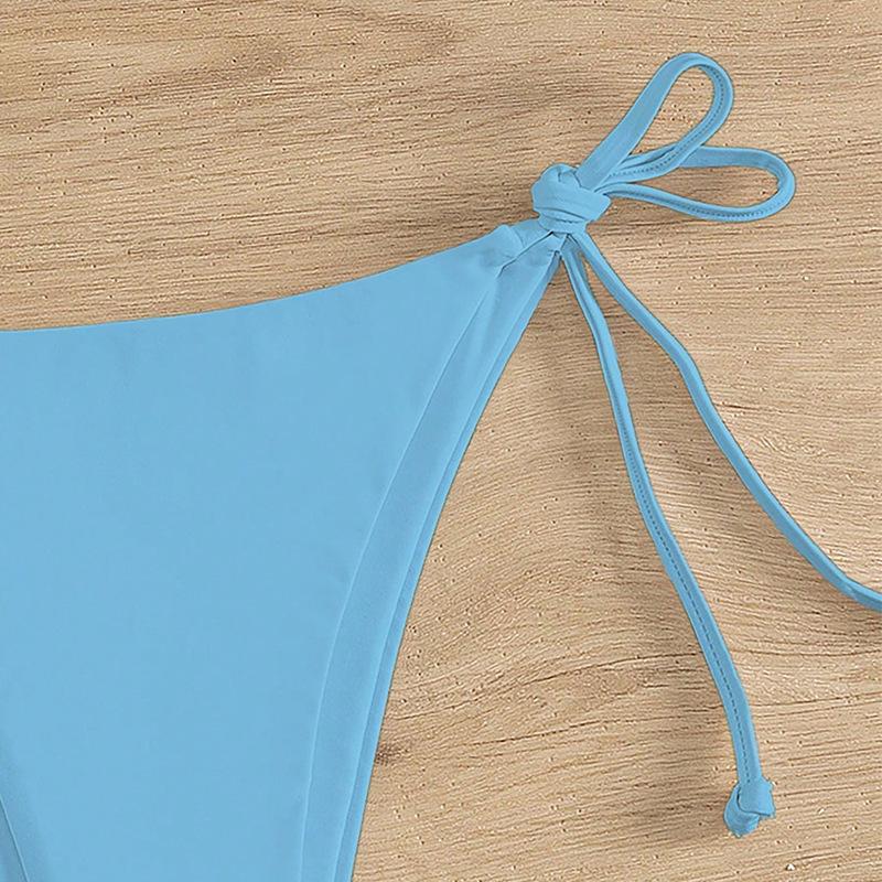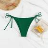 2025 Nuevo Traje de Baño Sexy de Color Sólido Europeo y Americano para Mujer Bikini Playa Aguas Termales Calzoncillos con Cordones Venta al por Mayor