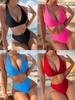 Traje de baño de dos piezas liso europeo y americano nuevo 2024 para mujer, bikini sexy con volantes de moda
