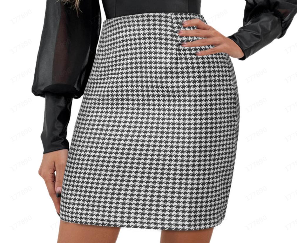 Amazon Transfronterizo Europeo y Americano Falda Sexy para Mujer Pata de Gallo Slim Línea A Cintura Alta Cadera