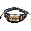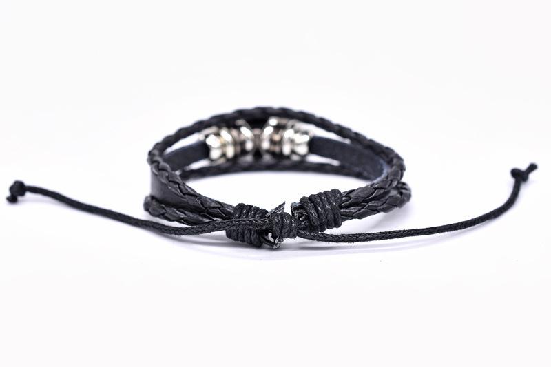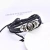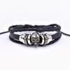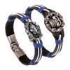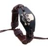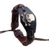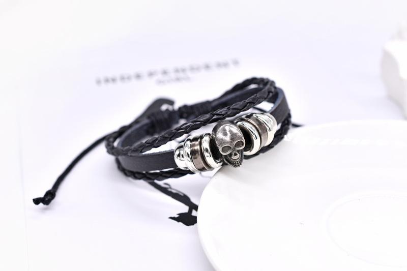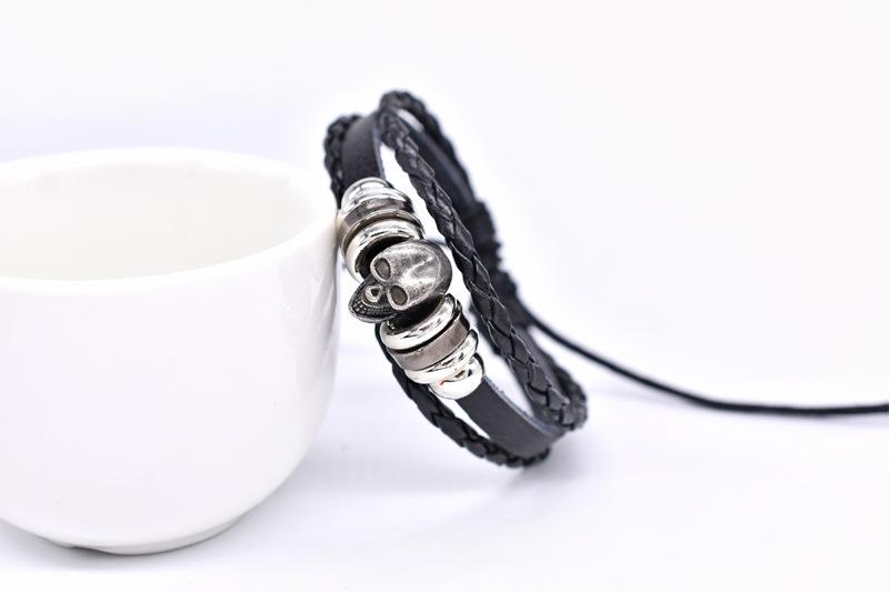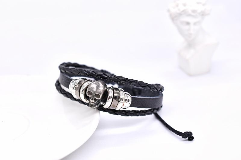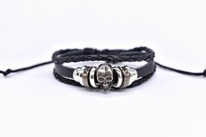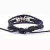 Pulsera tejida de piel de vaca con calavera popular europea y americana para hombre, cabeza de fantasma, aleación de zinc, ajustable, cuerda de cera, pulsera de cuero