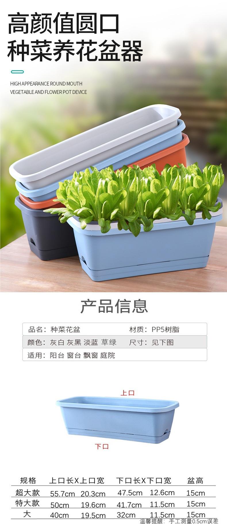 Maceta rectangular de plástico para balcón, maceta larga para flores, maceta para balcón, maceta para plantar verduras