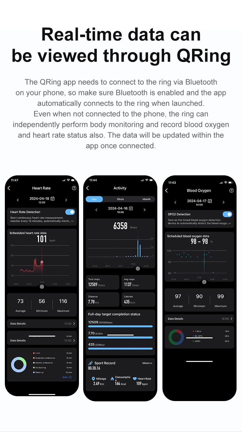 Nuevo Anillo Inteligente R06 Monitoreo de Frecuencia Cardíaca Sangre Anillo Inteligente QRing