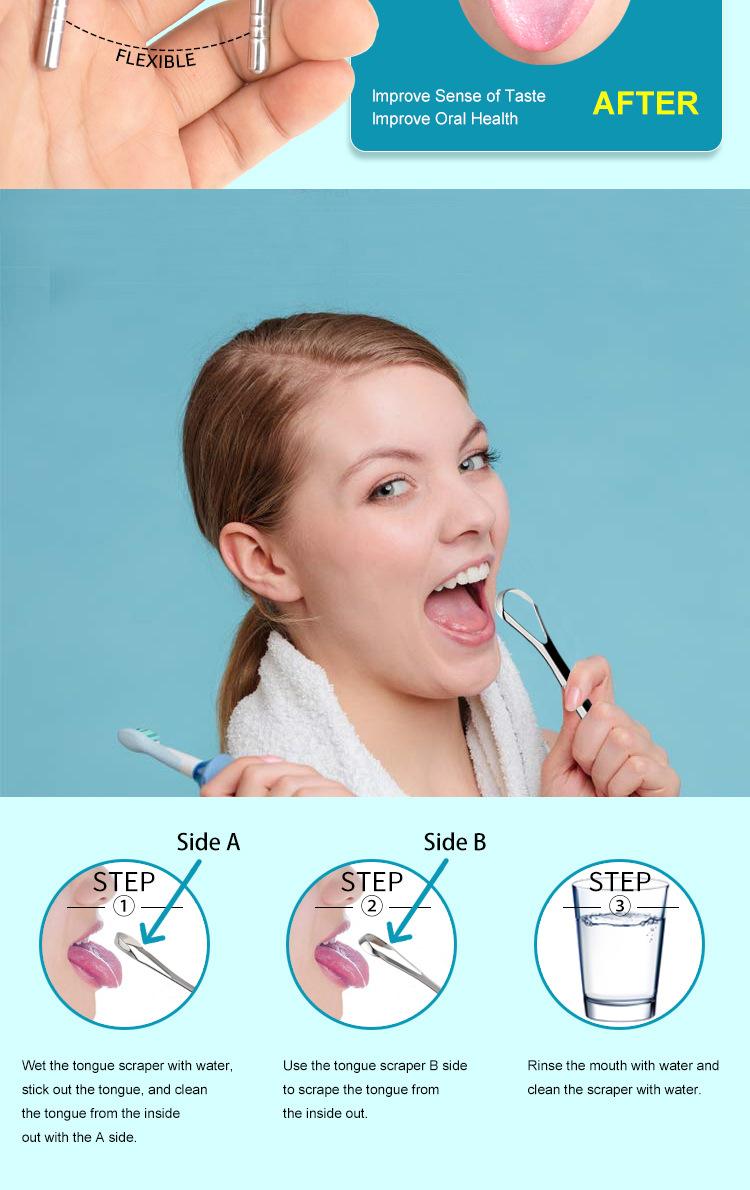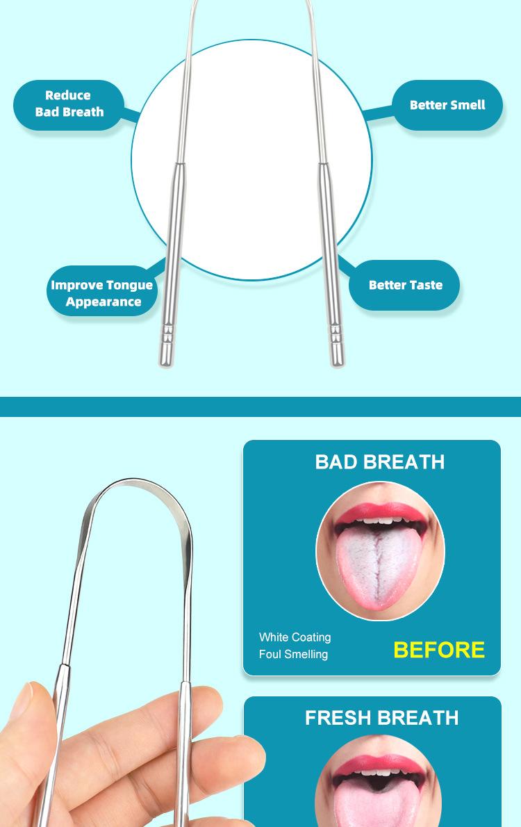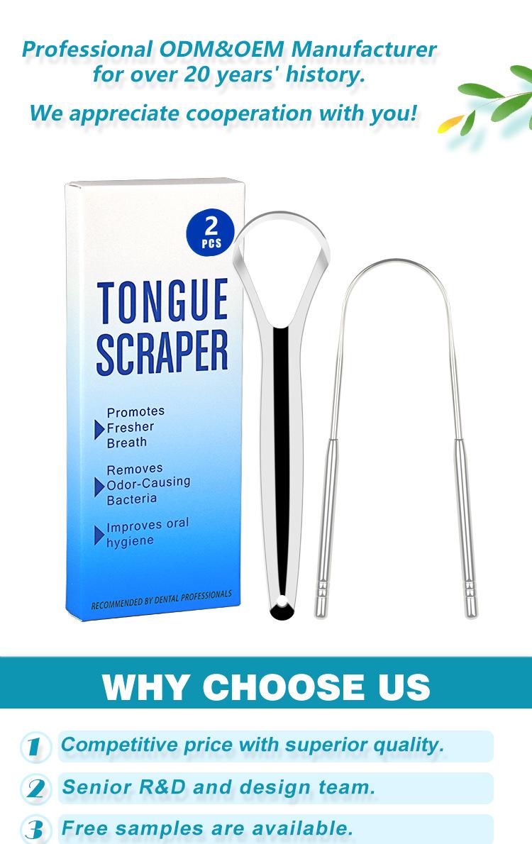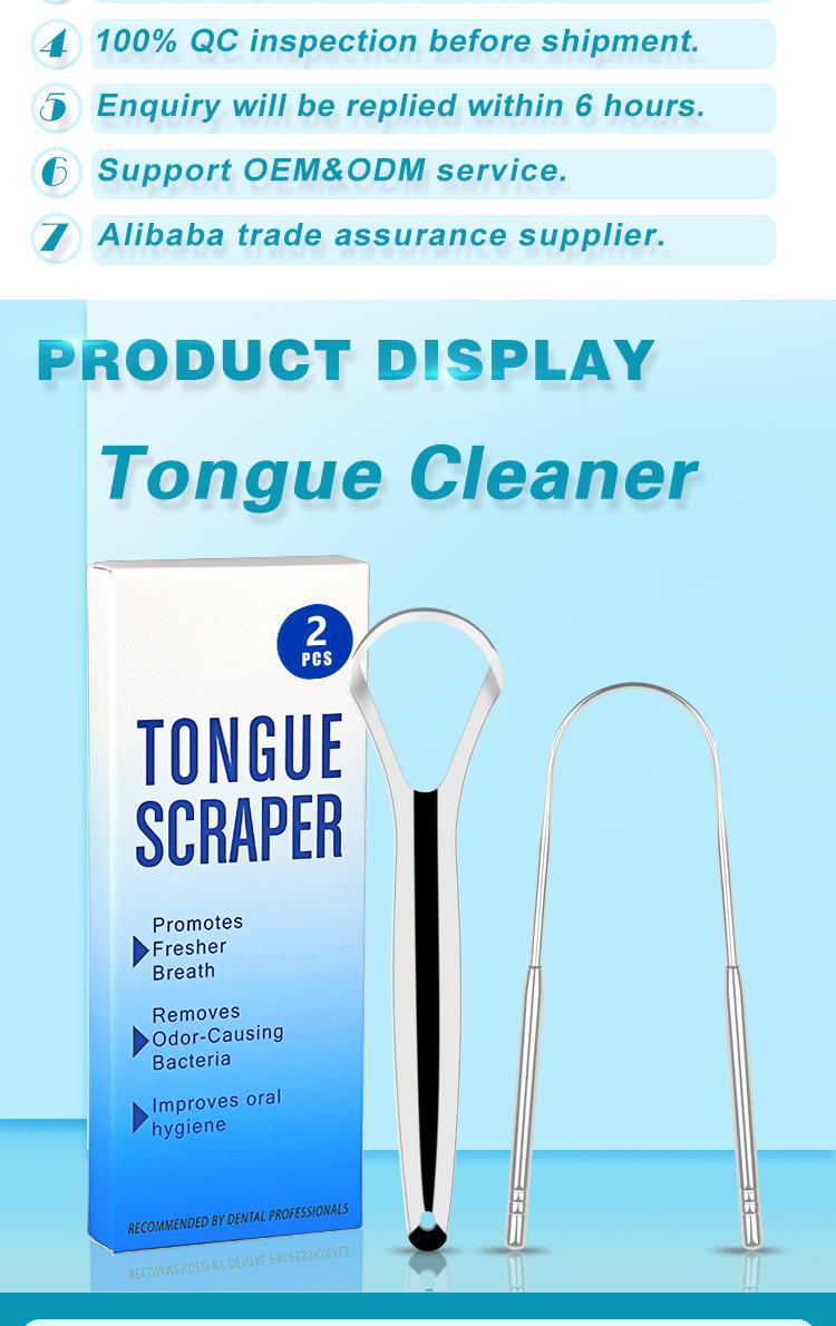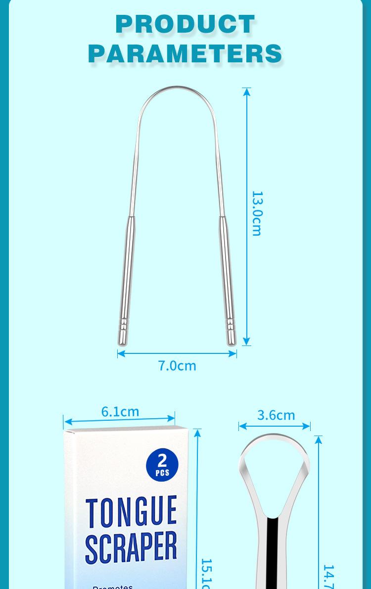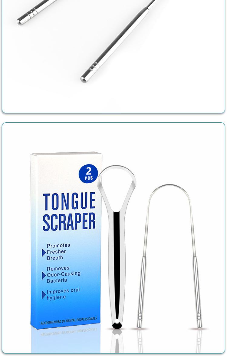 Venta al por mayor transfronteriza Limpiador de lengua en forma de U cartón raspador de lengua acero inoxidable limpieza bucal cepillo para lengua productos de comercio exterior