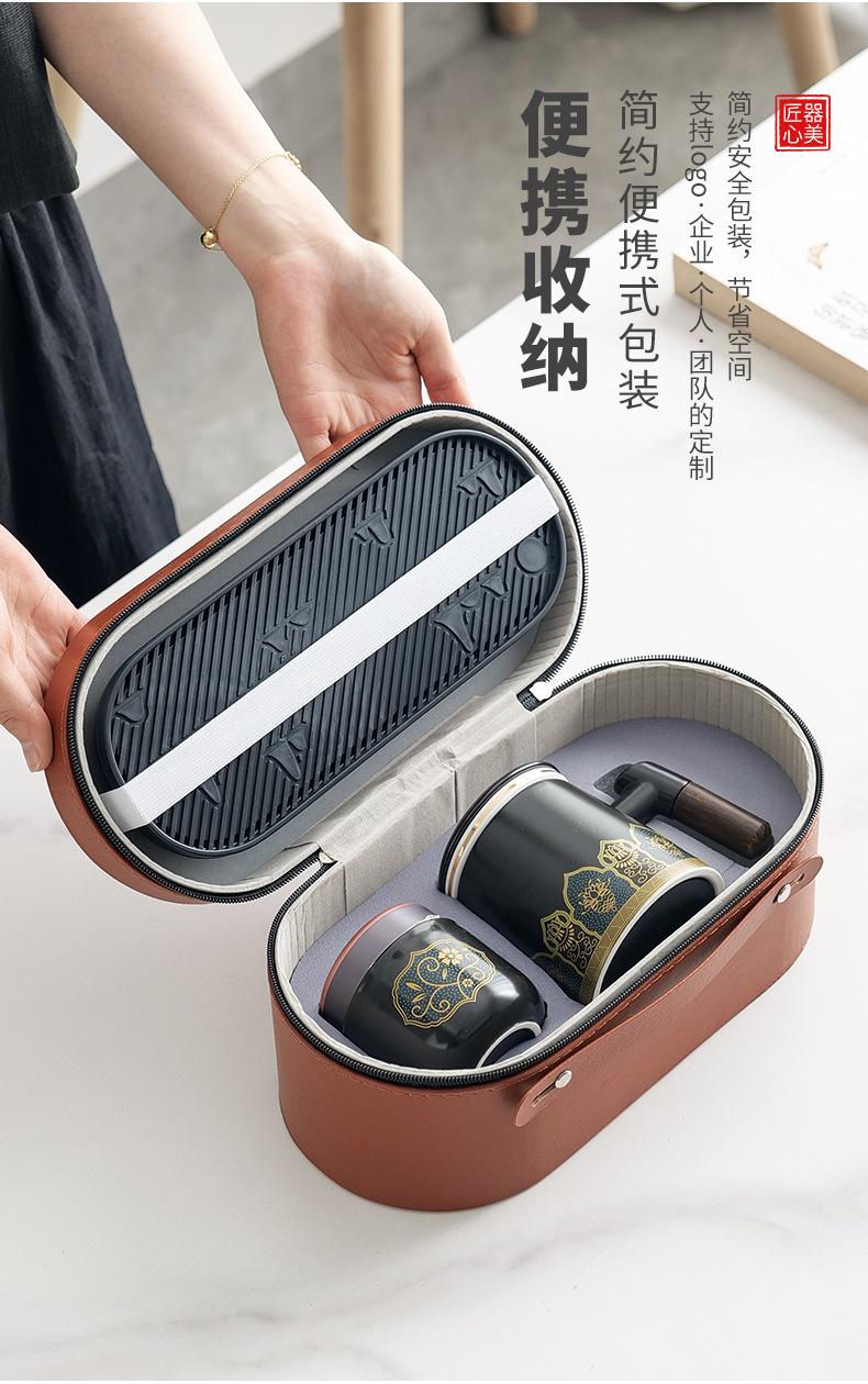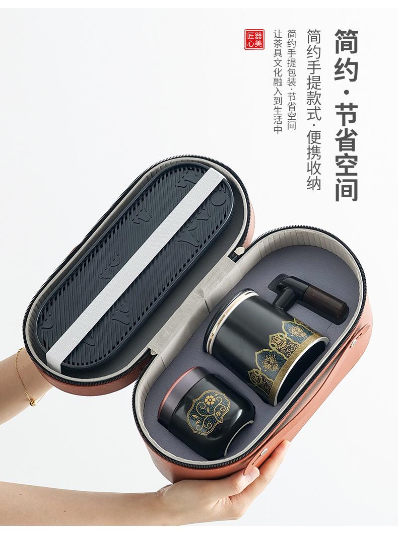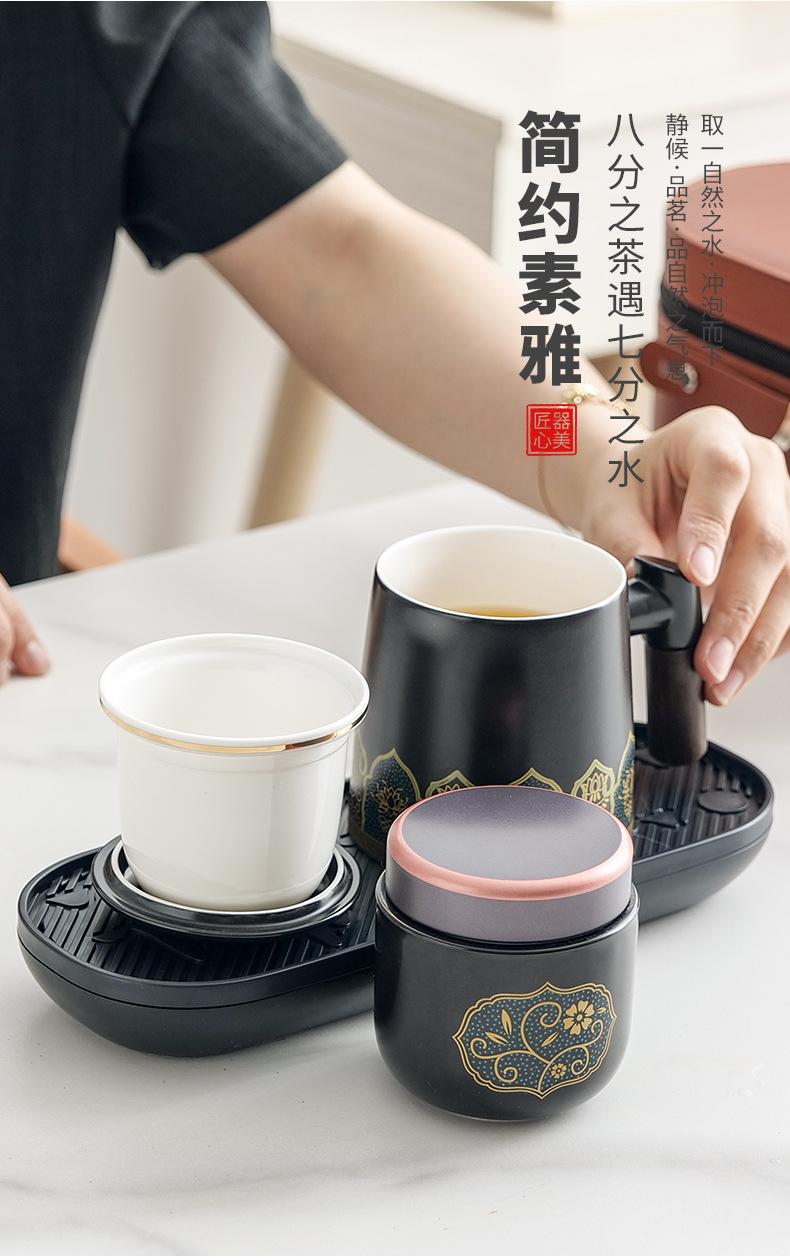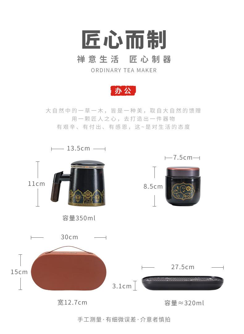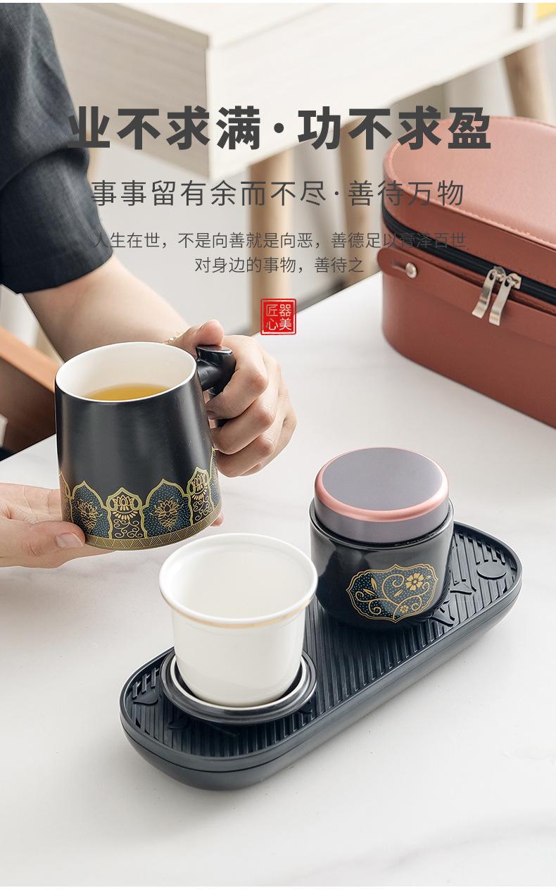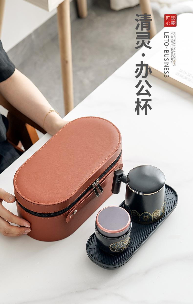 Qingling office Cup Ziwei Lotus Black [Brown small leather bag]]