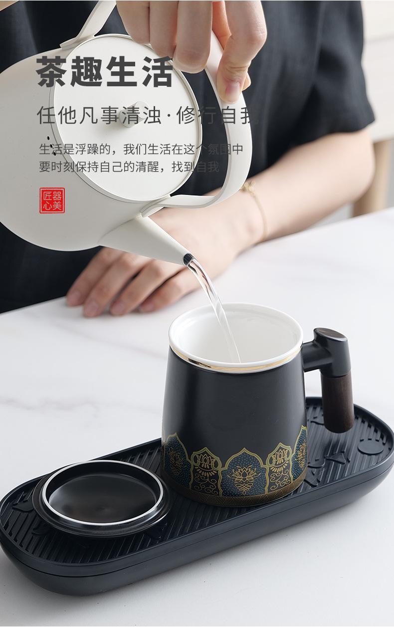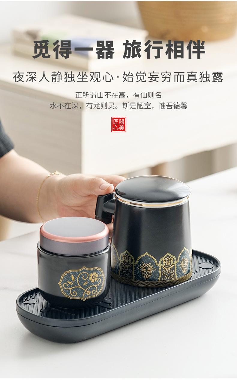 Qingling office Cup Ziwei Lotus Black [Brown Oval bag] with plate