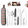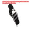 Set de Cucharada 4 en 1 Cuchara Plegable Cuchillo Tenedor Abrebotellas Acero Inoxidable Kits de Bolsillo Plegables Set de Vajilla para Exterior